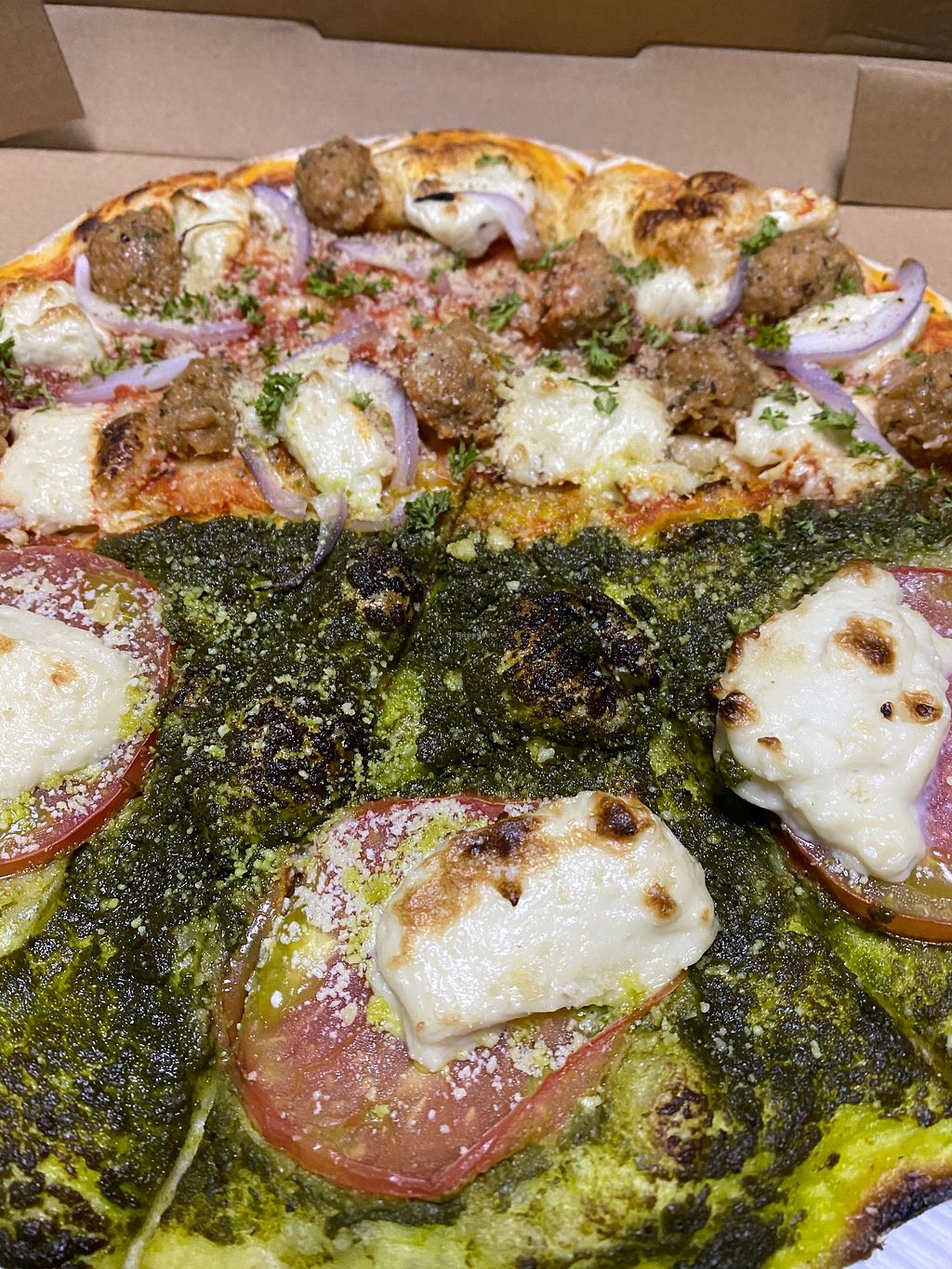 Margherita cashew pesto mozzarella & macadamia ricotta.