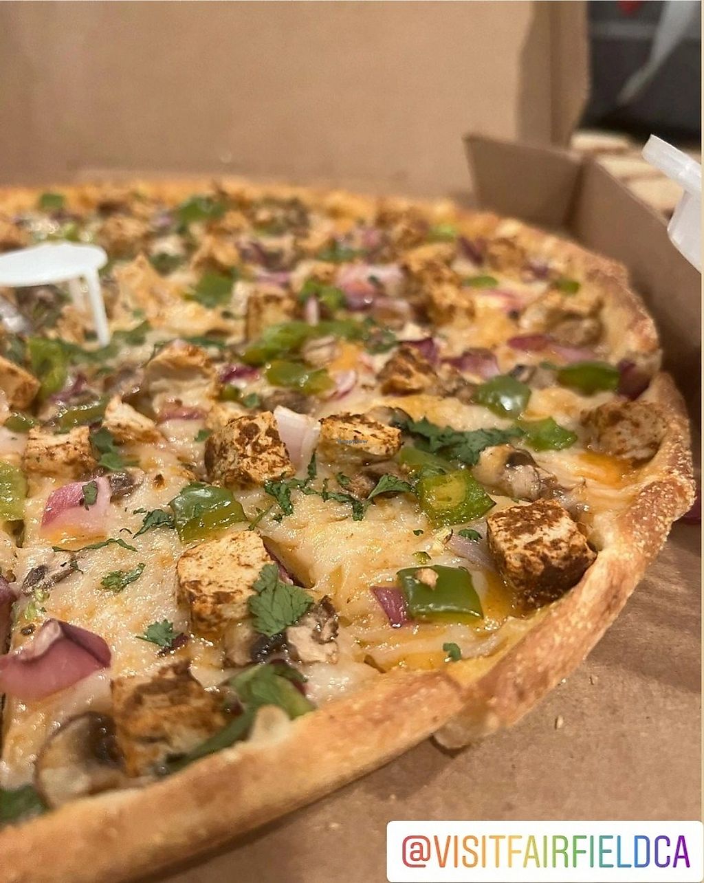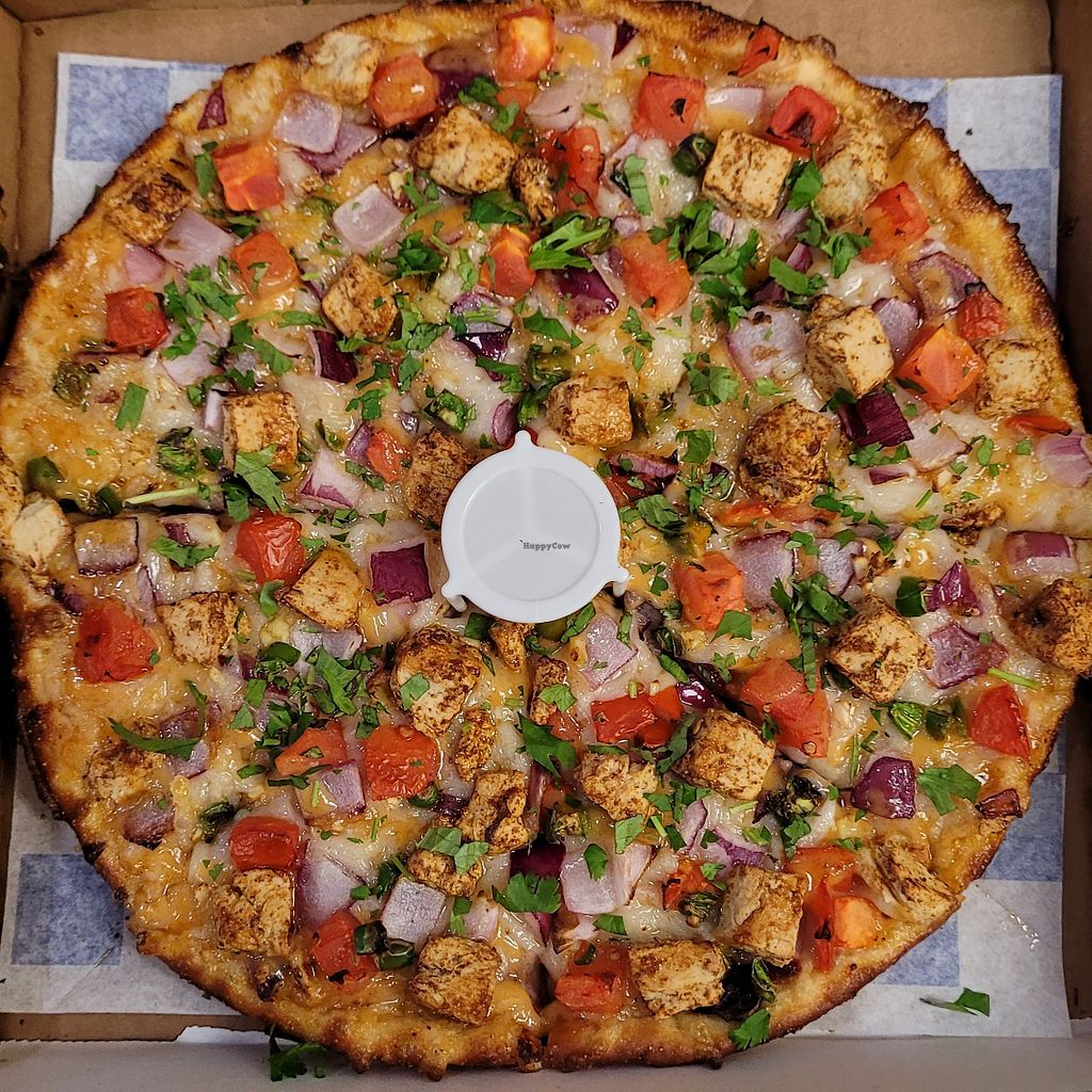 I’ve tried the vegan chicken tikka masala pizza, the vegan Manchurian pizza, and the vegan cheese breadsticks, they’re all so tasty! They offer vegan chicken, vegan pepperoni, and vegan sausage in addition to a decent vegan cheese! Great flavors. Size small was 8 pieces, enough for dinner leftovers! I also saw vegan wings on the menu.