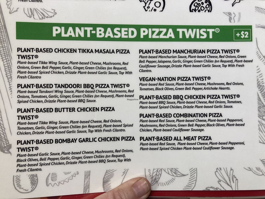 Wide variety of vegan options for alot of pizza favorites. Twisty bread, plant based wings, vegan meats, house made sauces, etc. They are accommodating to people with allergies, I told the woman I had a dairy allergy and she helped me! She also explained and showed me that they use separate utensils that are marked in cooking station for vegan items and have a variety of different plant based options. pizza was tasty, especially liked the crust. they do have a gluten free crust available for a little extra. House made vegan sauces like barbecue, vegan ranch etc. Go support them for being so vegan friendly!