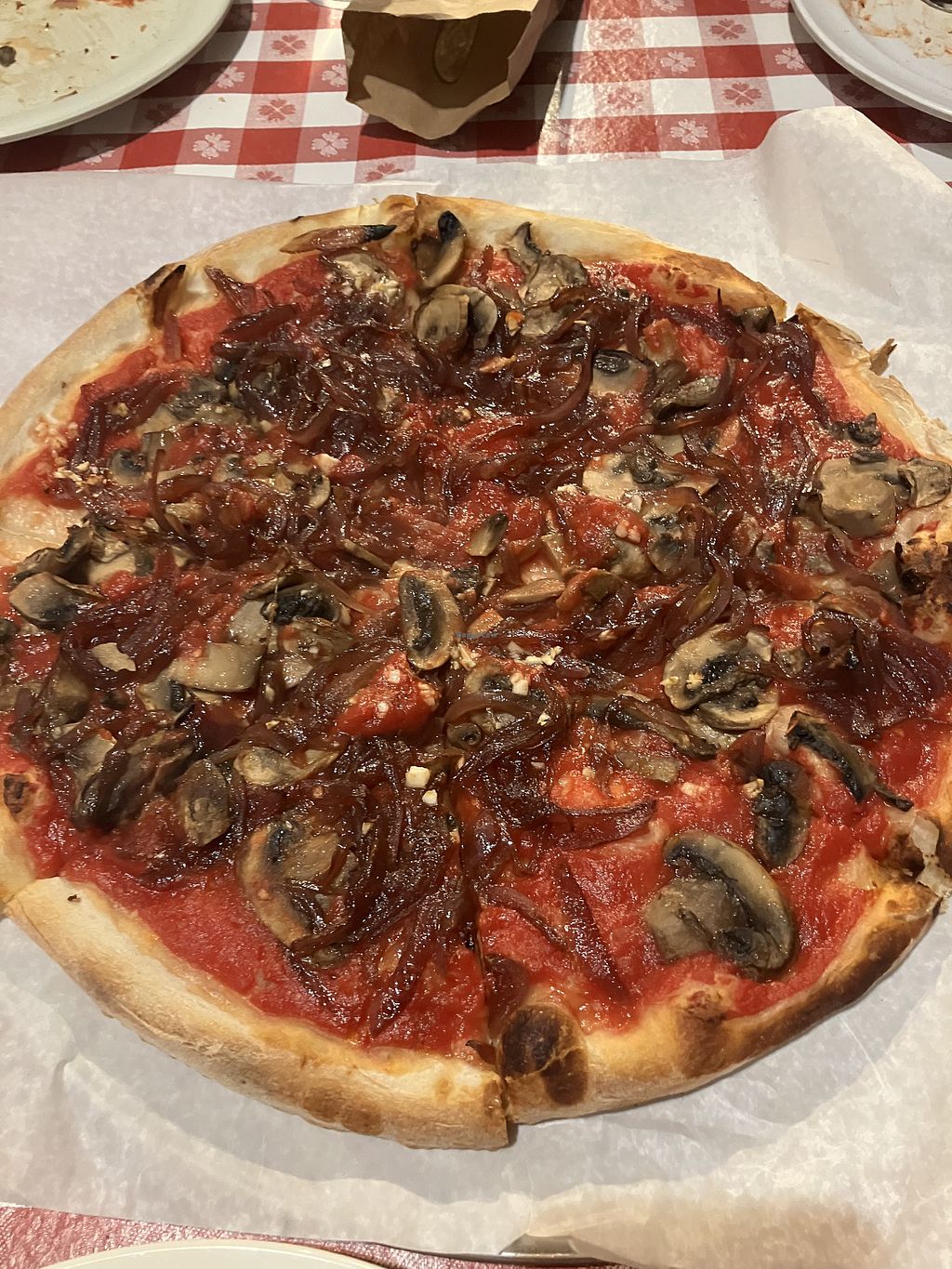 Red sauce, balsamic onion, mushroom, garlic - best pizza !