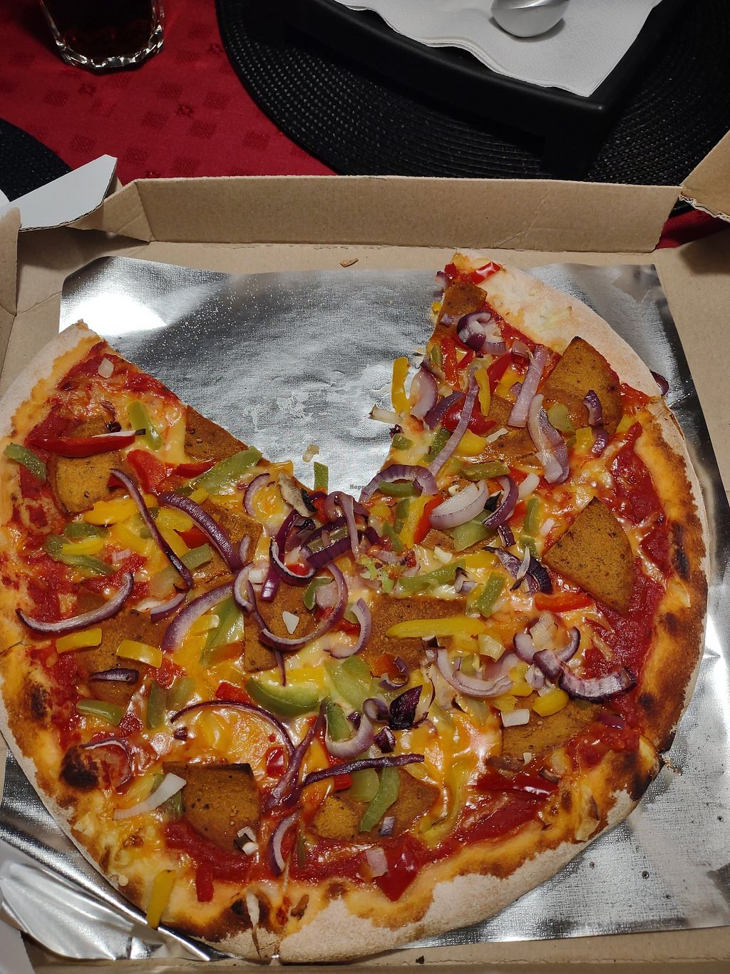 I was positively surprised, I often find myself not liking vegan pizza, but this one really wasn't too bad - also there's lots of different options to choose from!