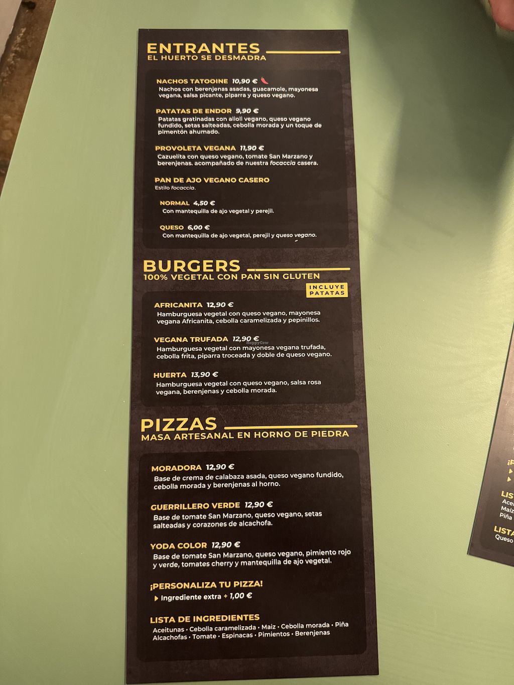 Es gibt eine extra vegane und eine vegetarische Karten mit Vorspeisen, Pizzen und Burger. Die Pizzen waren sehr lecker