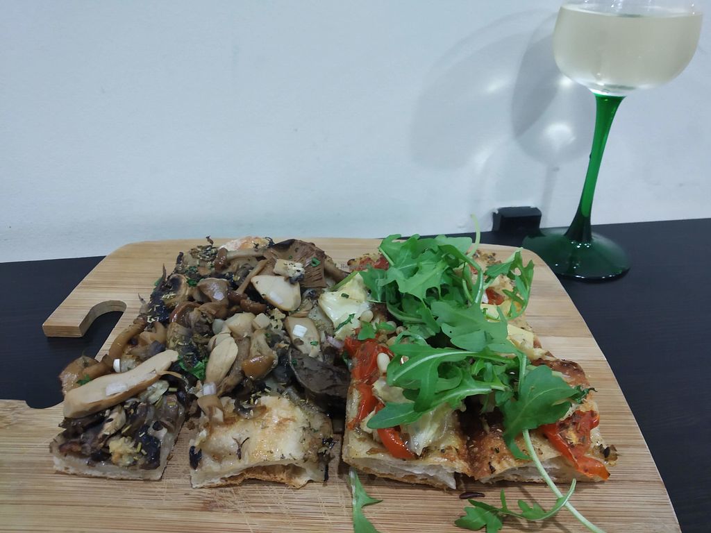 pizza champignons pizza tomate, artichaut, roquette vin blanc vegan