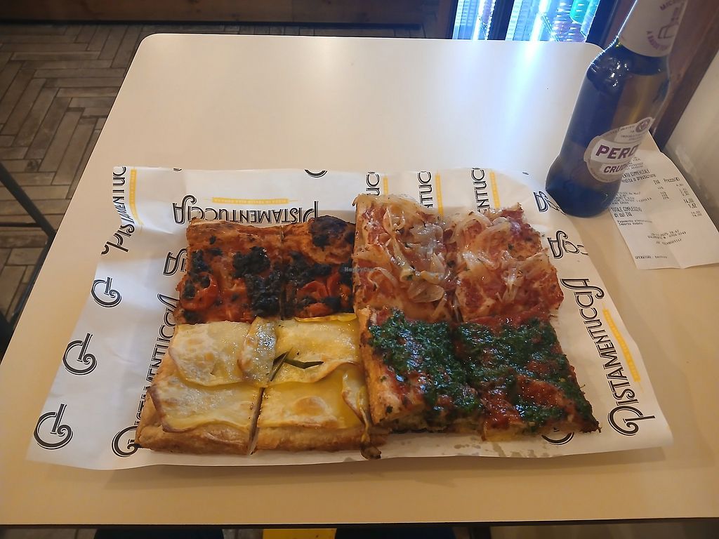 There was no vegan pizza, but they had 3 different types of focaccia: onion, olive and rosemary. Very tasty. €1.10 each