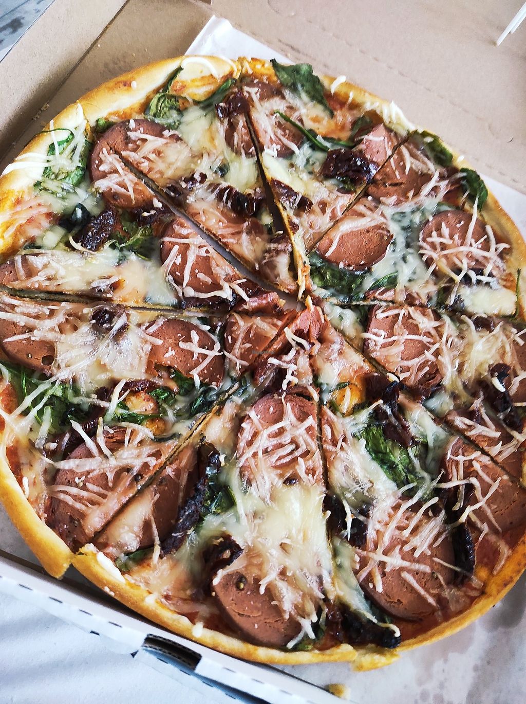 50cm 50/50 vegan pizza with vegan pepperoni and vegan bacon
