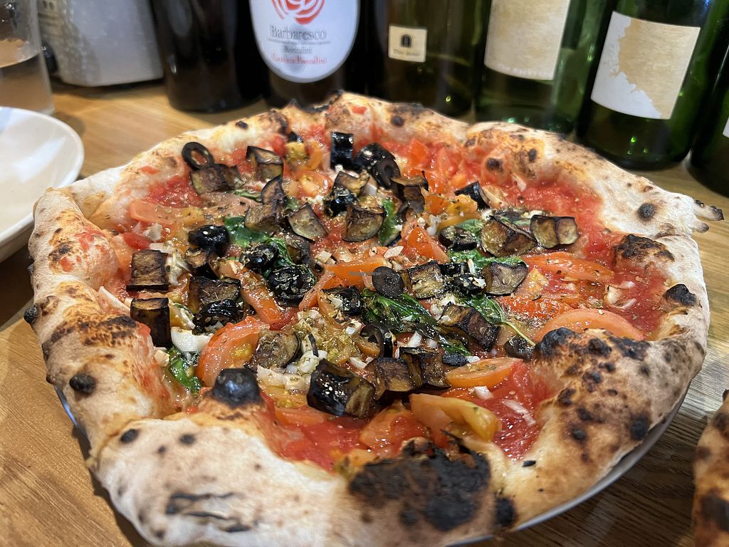Only one vegan pizza unless you want to customise but I wasn't made the offer to do so. Small space, so more than likely have to wait to get a table. I was told 30ims for takeaway so I just waited. Customers have to order a drink per person minimum too.