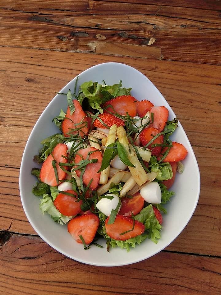 Salat Saftiger Italienier mit grünem Salat, Rauke, Cocktailtomaten, Ol…