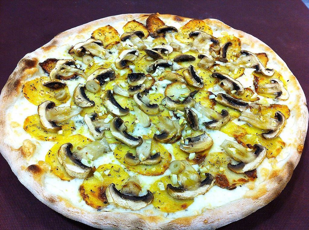Unique vegan pizza with Canarian miel de palma, walnuts and pears