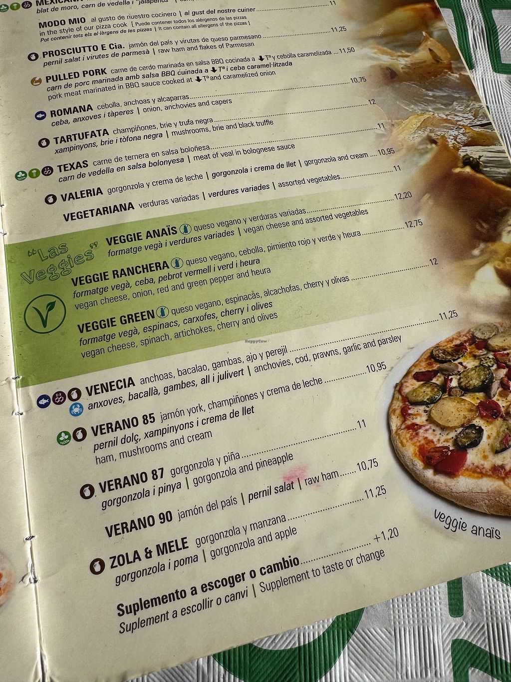 Carta vegana muy generosa