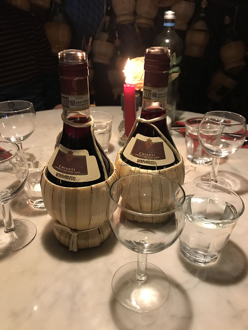 Wir haben an einem Samstagabend für fünf hungrige Esser (drei Fleischesser zwei Veganer) reserviert und bei dem Gästeansturm erwies es sich im Nachhinein als erforderlich. Auf Englisch konnten wir uns gut verständigen und auch, was überhaupt vegan ist, war der Bedienung bekannt. Die Atmosphäre war warm und gemütlich. Das Lokal ist mit vielen leeren Prosecco-Flaschen an Wänden und Decke dekoriert, deren Anzahl man das Alter des Lokal ansieht. Die vegane Pizza wird mit veganem Käse belegt oder auf Wunsch auch ohne Käse serviert. Frische Zutaten werden nicht unter dem Käse ertränkt, sondern obenauf gelegt. Die Pizzen werden üppig belegt und machen auch große Bäuche satt. Es hat uns allen geschmeckt!