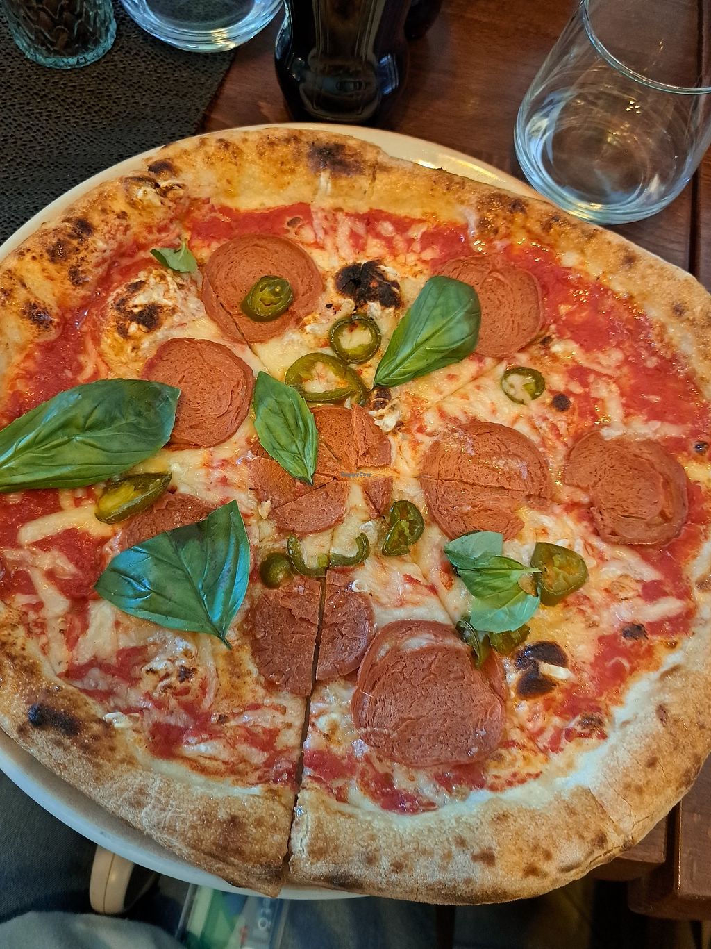 Der Vegane Käse und Mozzarella, inkl Vegane Salami auf der Pizza 🍕 hat wirklich hervorragend geschmeckt! Und der Teig ist echt fluffig! Die Pizzeria ist zwar klein, aber fein und auch Hundefreundlich. Ist ein guter Ort wenn man mal mit Omni Freunden als Vegan lebende Person Pizza essen gehen möchte😊💚🍕