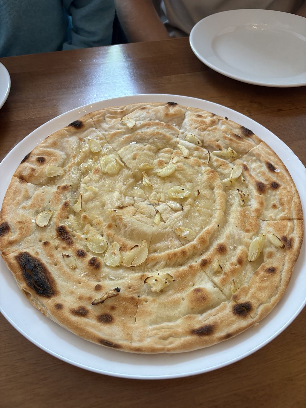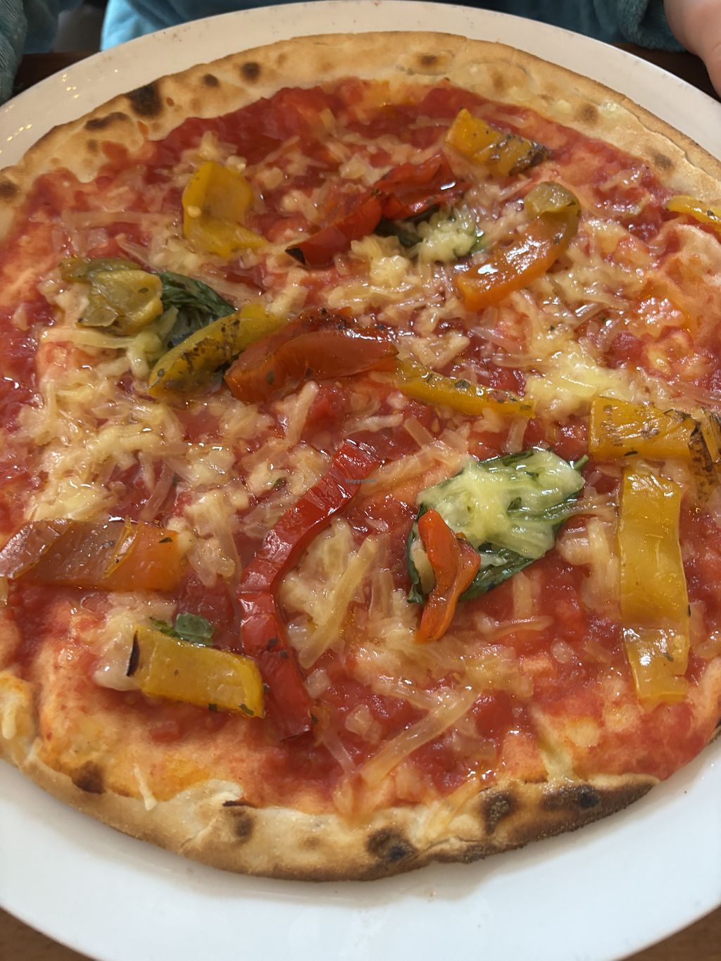 Vegan garlic bread Vegan pizza topped with vegan nduja and sweet pep…