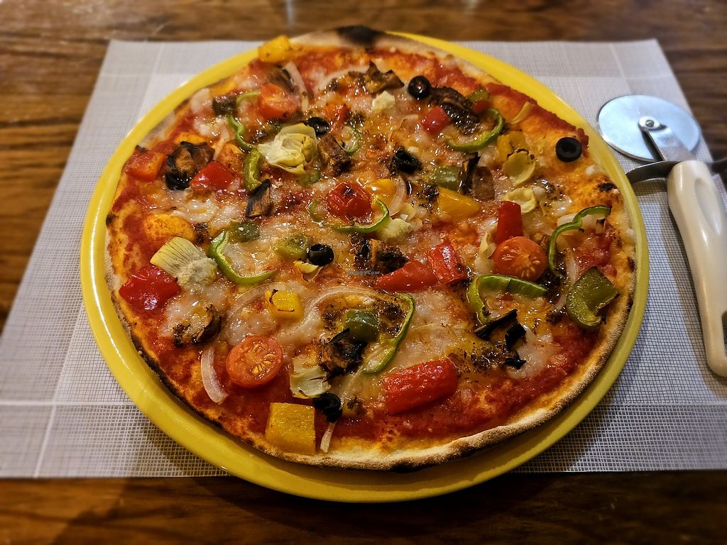 La Roda Groga is a small, cosy gem with bookshelves on the walls, a really friendly patron, and attentive staff. The menu has several clearly labelled pizzas, which can be made vegan with vegan cheese. I had the vegetal and it was delicious!