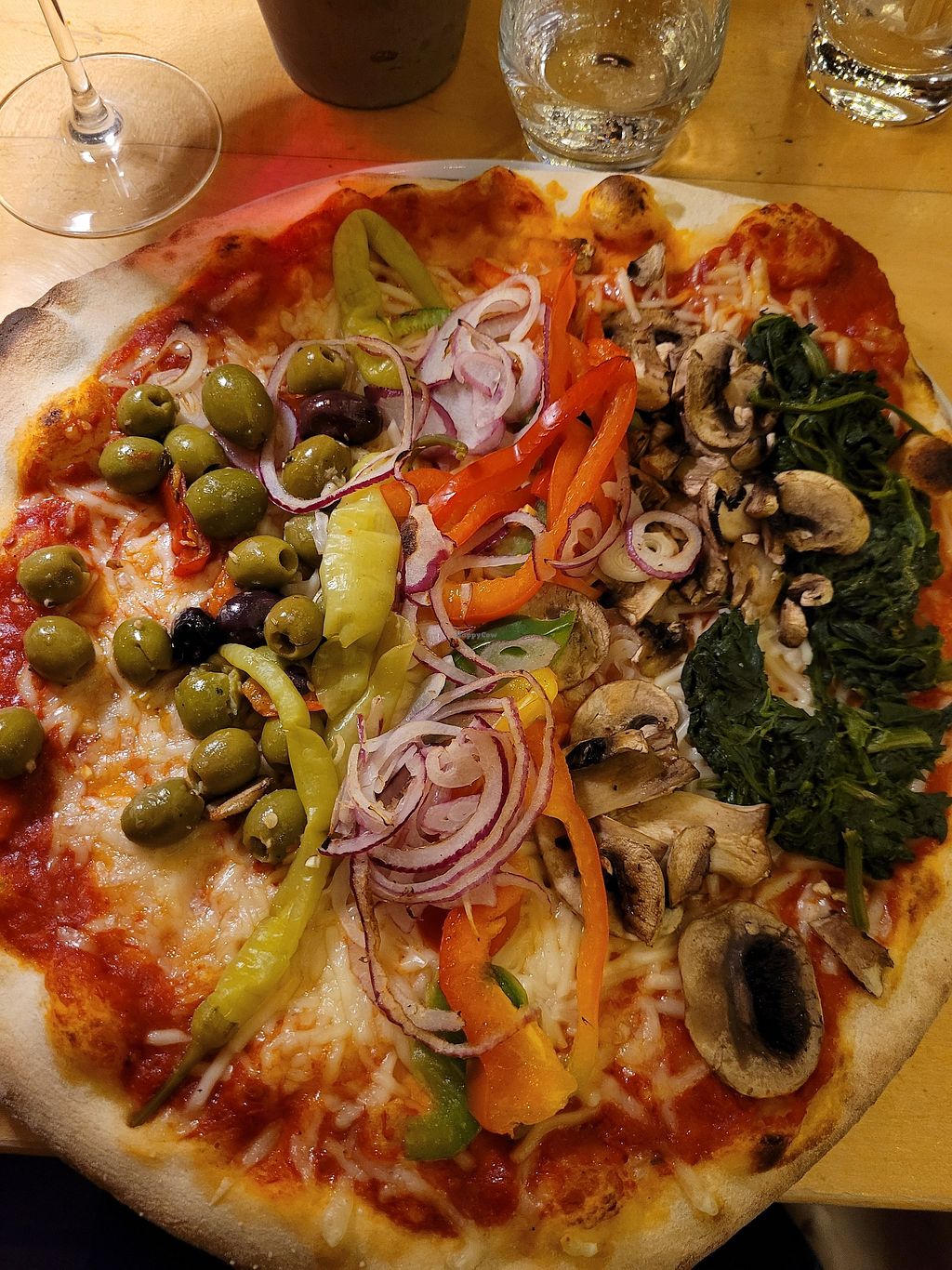 Based upon the previous preview we decided to dine at this restaurant. The visit unfortunately was a disappointment. On the pizza with spinach only the normal cheese was exchanged for vegan cheese but they left the gorgonzola on. We also ordered three vegan pizzas with vegetables but only two were veganized upon arrival. Even though it was visually obvious that they looked different we had to press the waiter to check with the kitchen which he did so reluctantly. The pizza bread with avocado dip was nice but the other pizzas kind of uninspired. Maybe we are wrong expecting a pizza with vegetables not to mainly consist out of onions and maize (which we hate on pizza). If you give it a try stick to the basics or visit the restaurant next door (Antica Romana). They seem to have decent vegan dishes (buffet, all you can eat but pricy).
