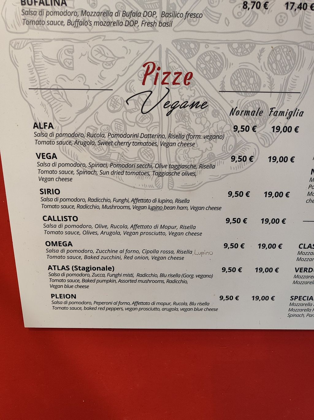 Vegan pizza menu - Pizzeria L'Angelo, Venice
