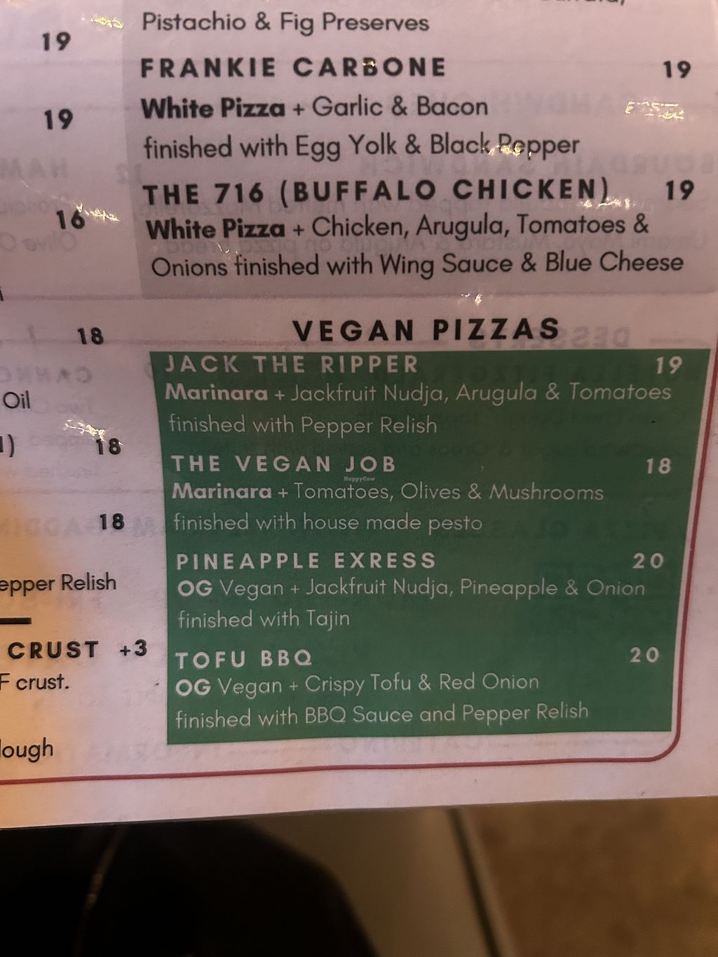 Pros: Lots of vegan opts, Amazing crust