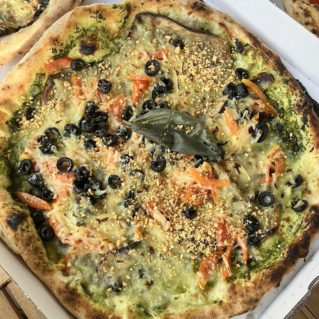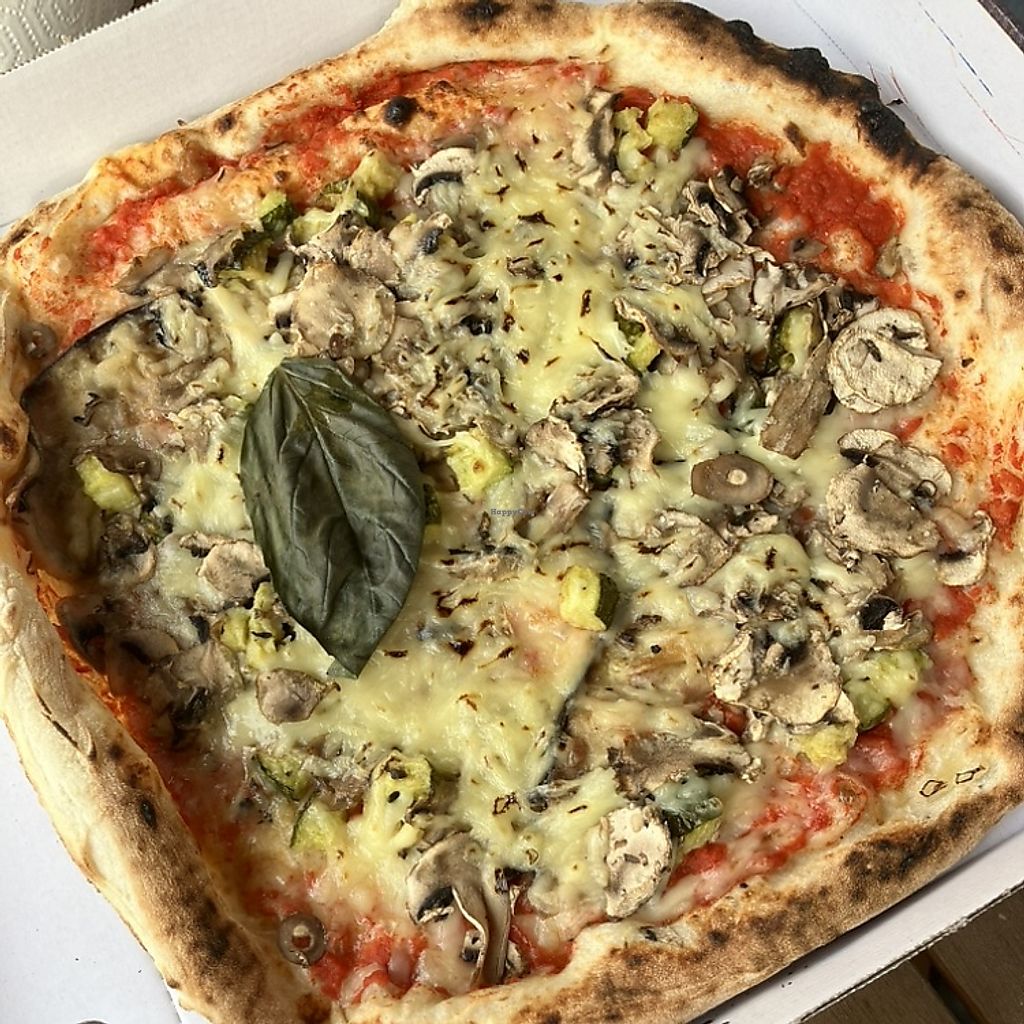 Serves meat, vegan options available. Italian pizzeria using traditional oven. Menu includes a section of vegan pizzas (with vegan cheese) using toppings like aubergine and truffle or pesto. Open Mon-Sun 13:00-22:00.