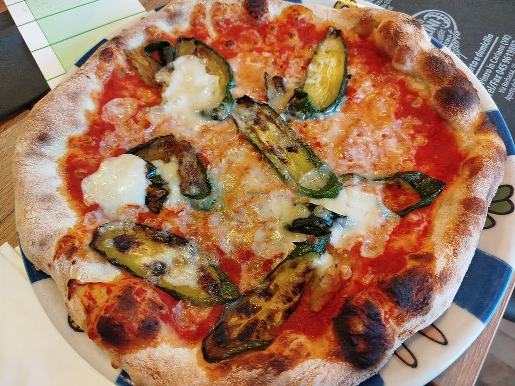Pizza Sole con seitan, pesto di zucchine, pomodorini e stracchino veg