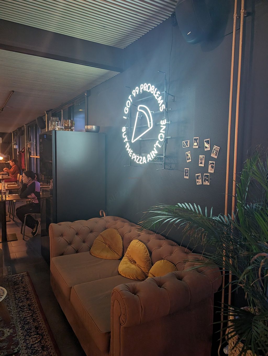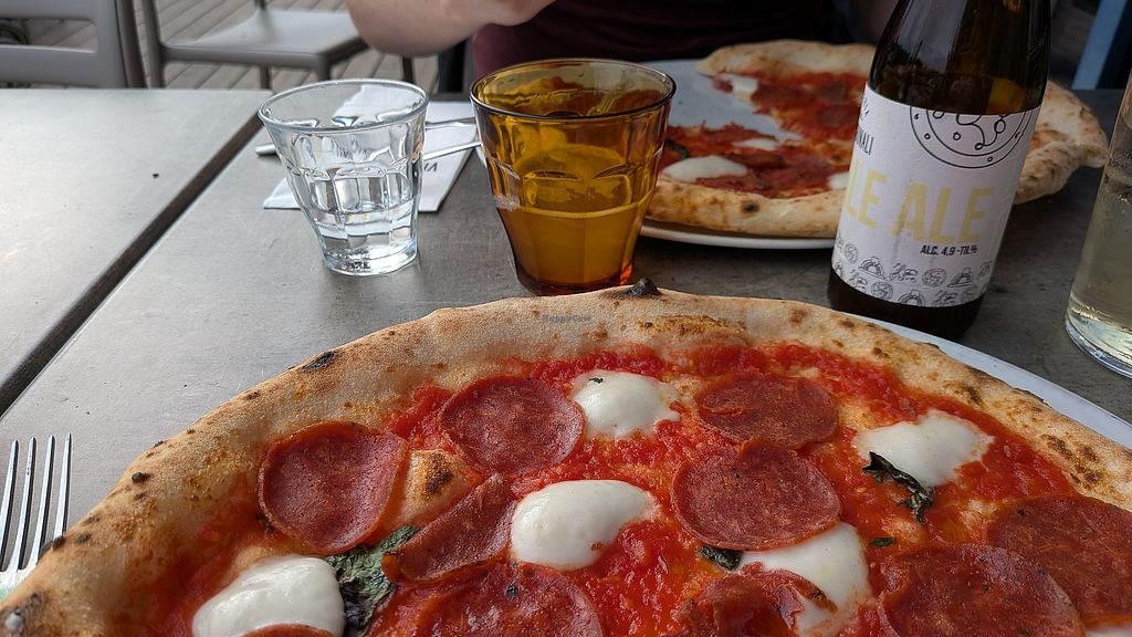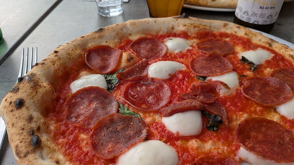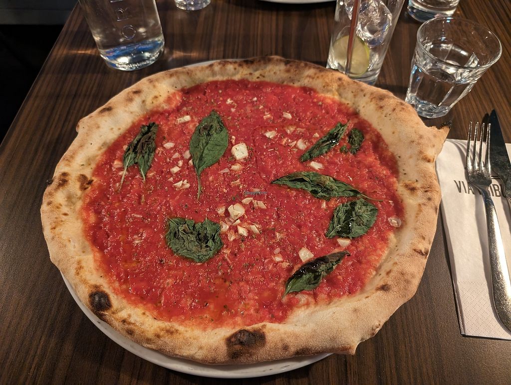 Die Pizza ist in Ordnung. Es gibt zwei vegane Optionen. Die Pizza ist ziemlich groß und wird im Holzofen gebacken, allerdings sind die Preise ziemlich hoch.