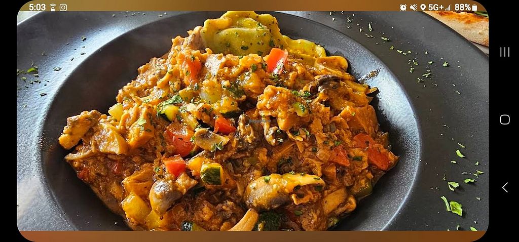 Read moreThe pumpkin ravioli came with a hearty sauce with plant protein (tofu skin i think) and lots of veg.