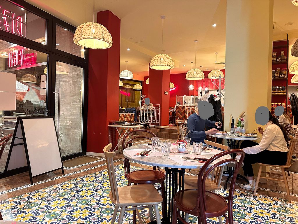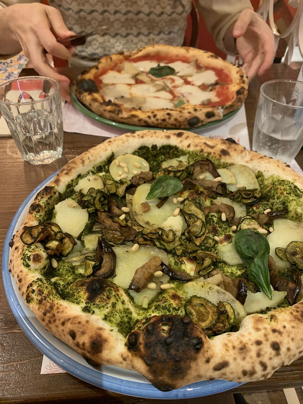 Wir durften die vegane Margarita-Pizza mit weiteren Toppings belegen (wurde uns sogar angeboten) und bei einer anderen vegetarischen Pizza haben wir den Käse weggelassen — war auch super lecker. Süßes Restaurant mit neapolitanischem Flair.