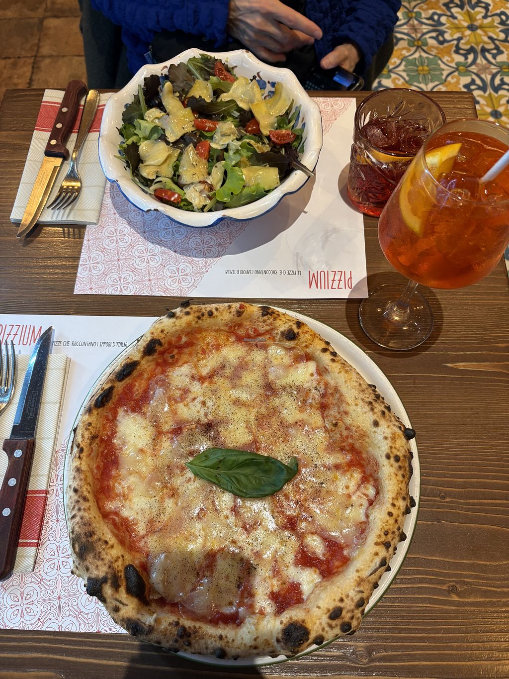 Spritz, salad and veg pizza