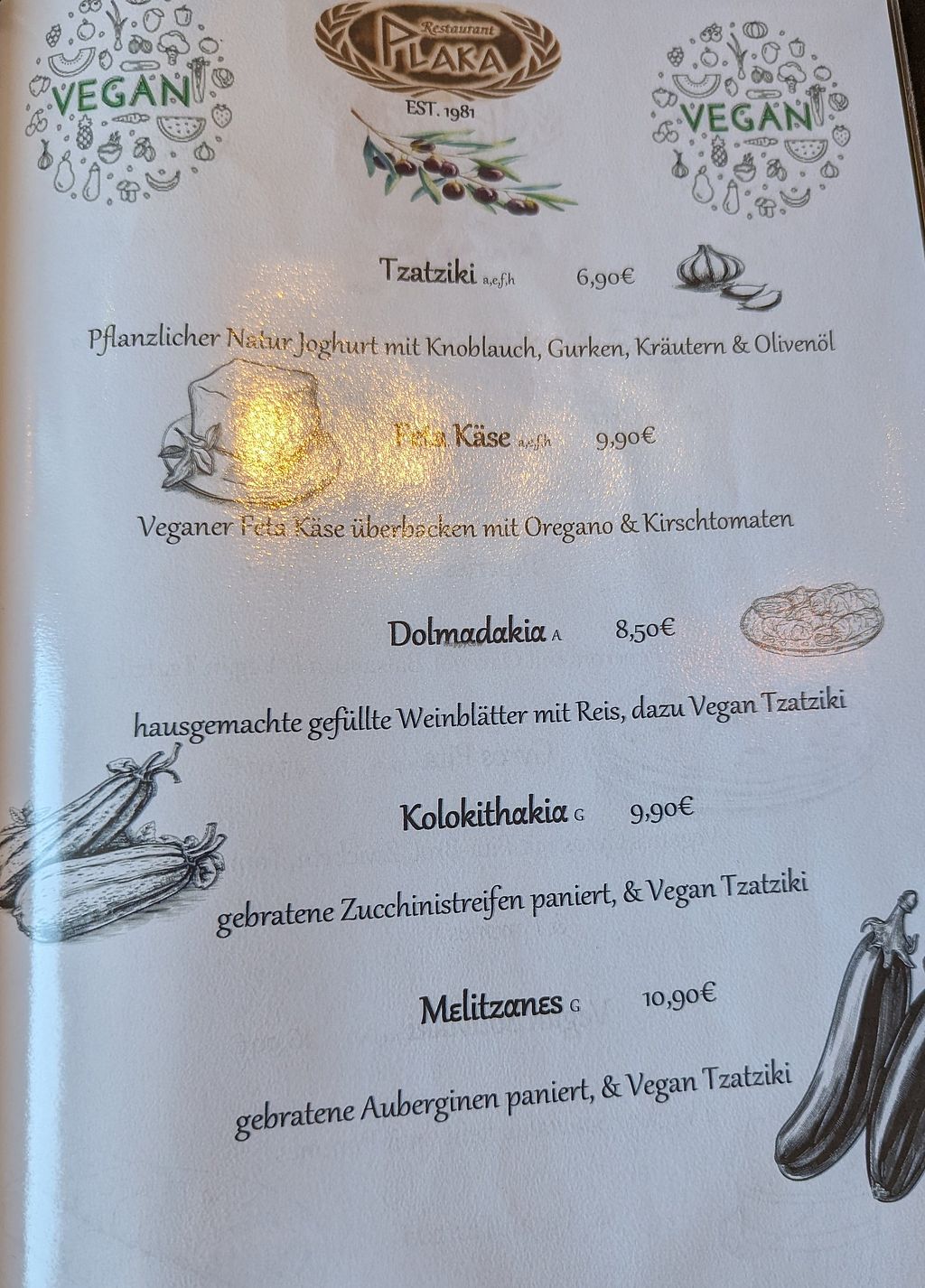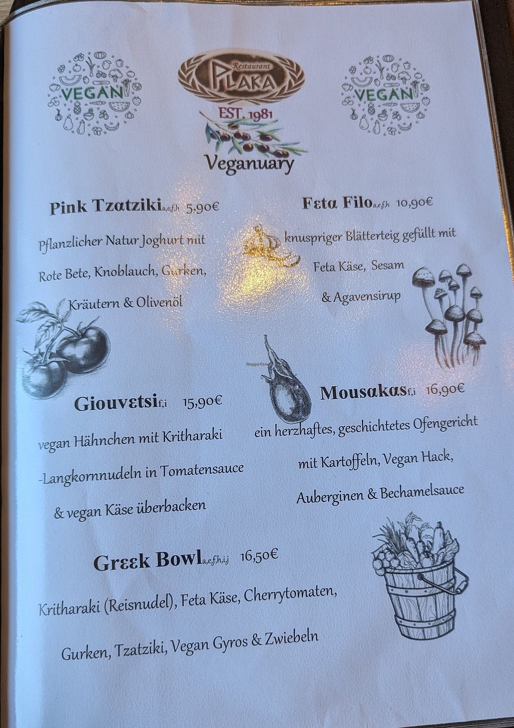 Die aktuelle vegane Karte
