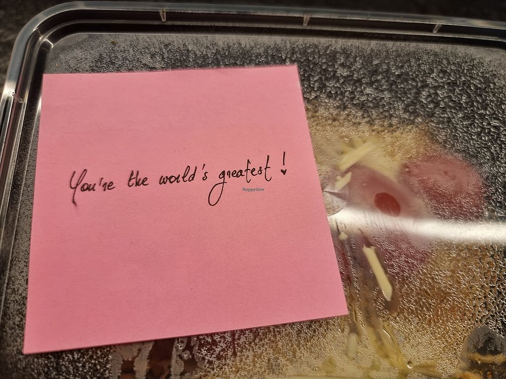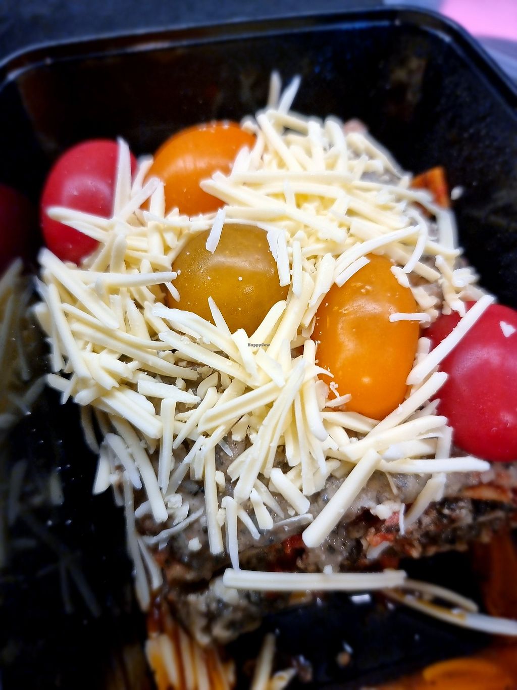 Several vegan dishes available for take away (to heat athome in micro wave). We had two sorts of lasagne and a dish with vegan 'chickn' and one smokey tofu. And vegan desserts (5euro a piece)