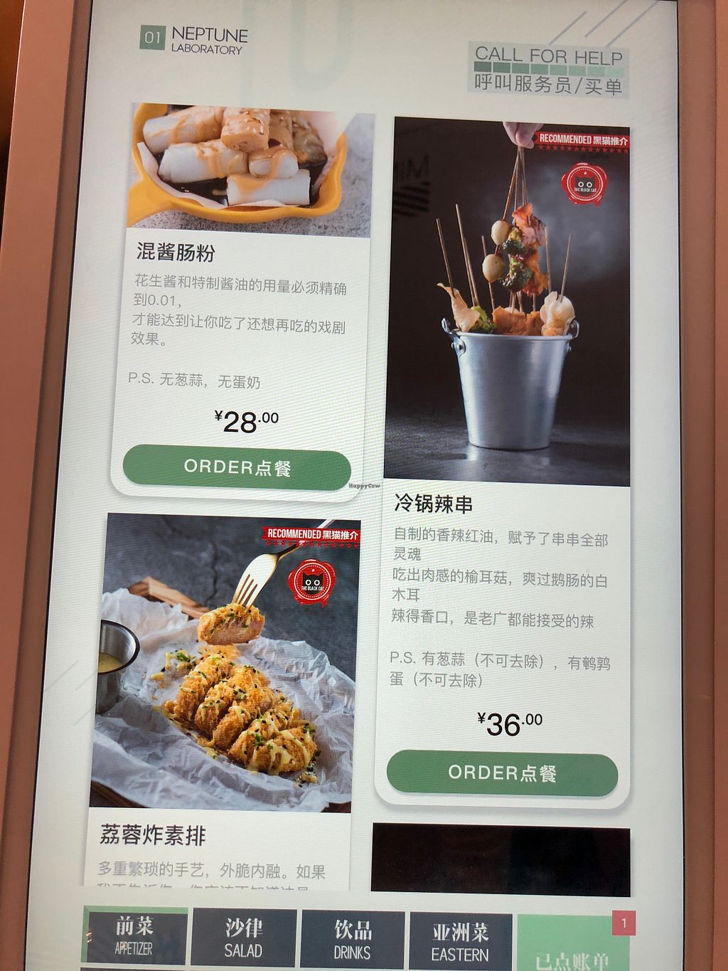 Eastern and Western vegetarian fusion restaurant. Some dishes have the option to be vegan, which you can clearly see and choose on the self-ordering electronic menu. Each table has its own menu in English and Chinese, making it convenient for foreigners to order. Offers the impossible meat and other plant-based meats. Reported closed, Jun 2019.