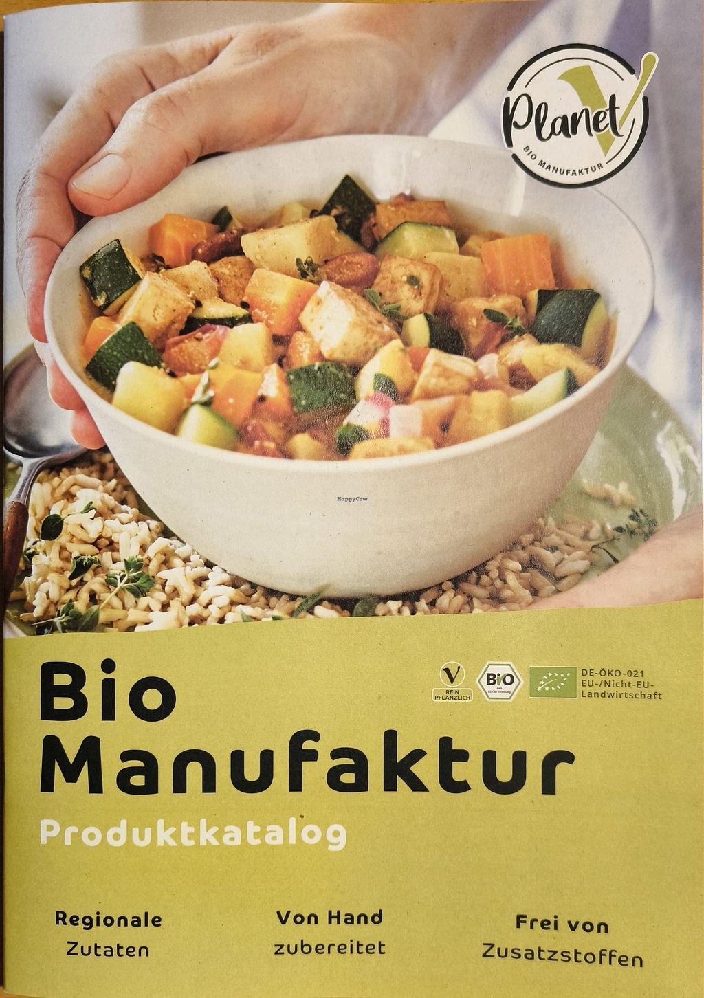 Fully vegan/plant organic dishes with regional production. Factory sales and an online shop.