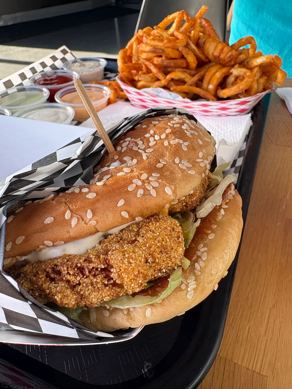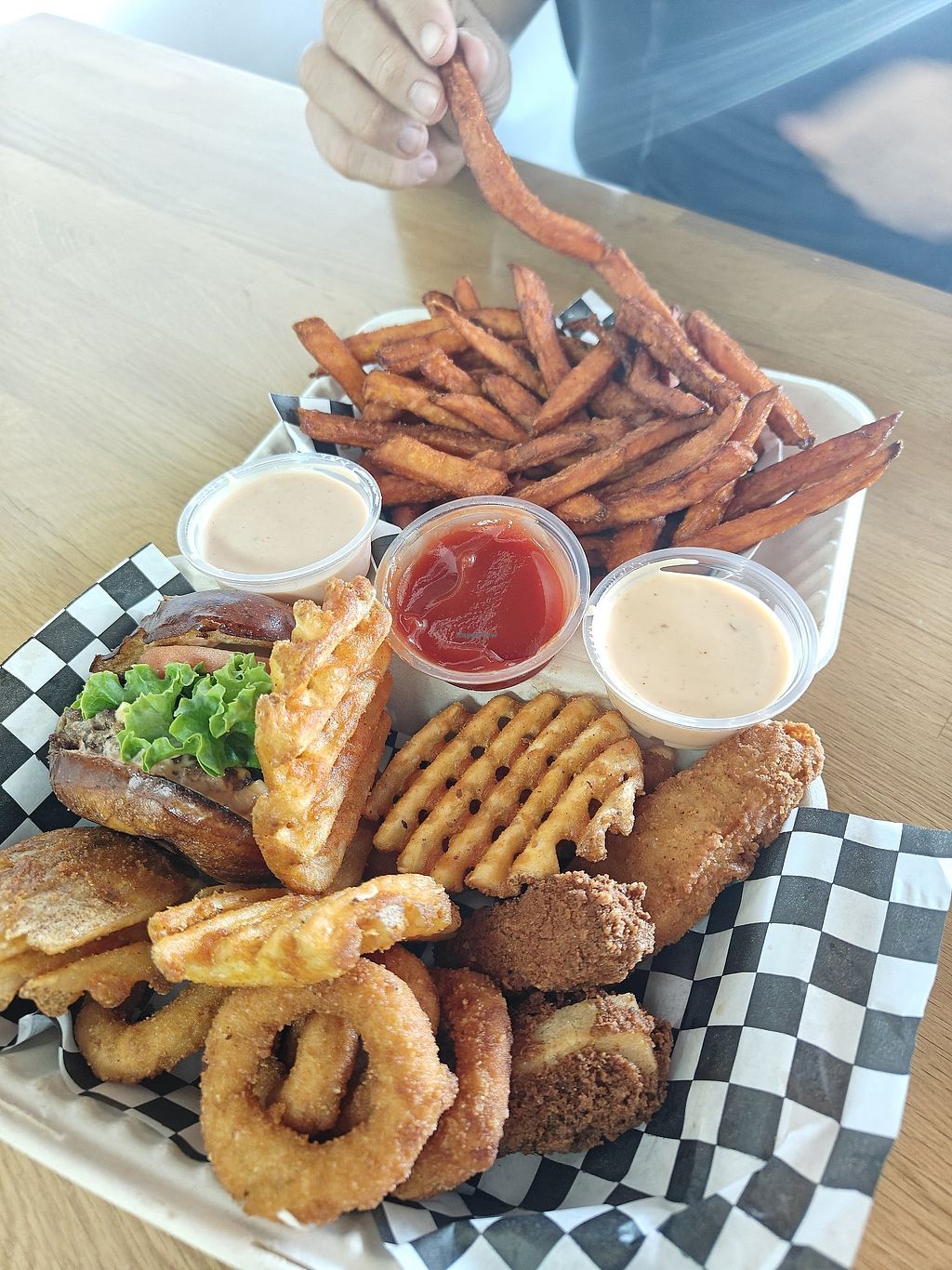 Read moreI also took a sampler and enjoyed their chicken tenders 7/10. Sweet potato fries were okay and the universe waffle fries came with a super spicy jalapeño sauce that we were not expecting. We didn’t like those, but would return to try other burgers.