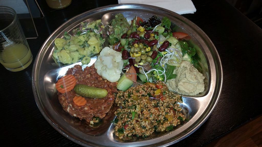 Read moreGeneral theme of a meal is some sort of yummy salad, a tofu/seitan/tempeh main and bread and sauces. There's also the option of a salad/starter tasting platter :oD