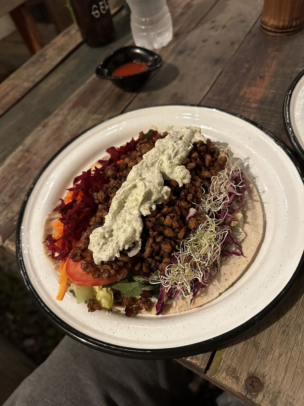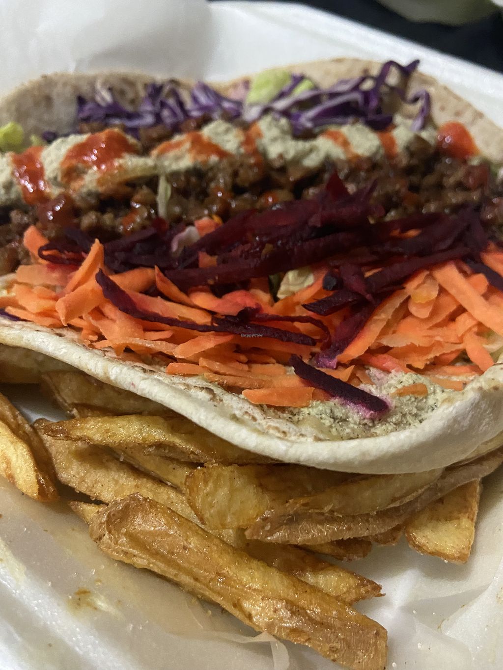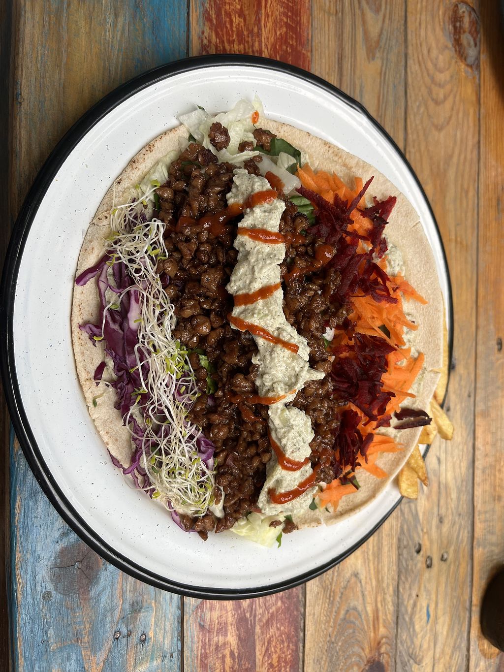 Pros: Vegan Tzatziki sauce, 100% Vegan, Wraps and burgers