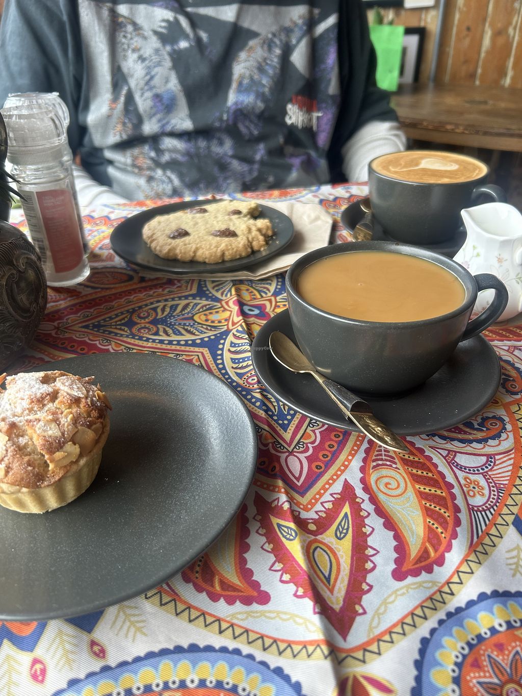 Picture of a grey cup and saucer containing a Dirty Mushroom Latte driβ¦