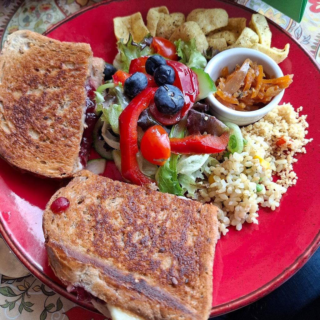 Cheese and ham toastie with couscous and salad (the meal also came witβ¦