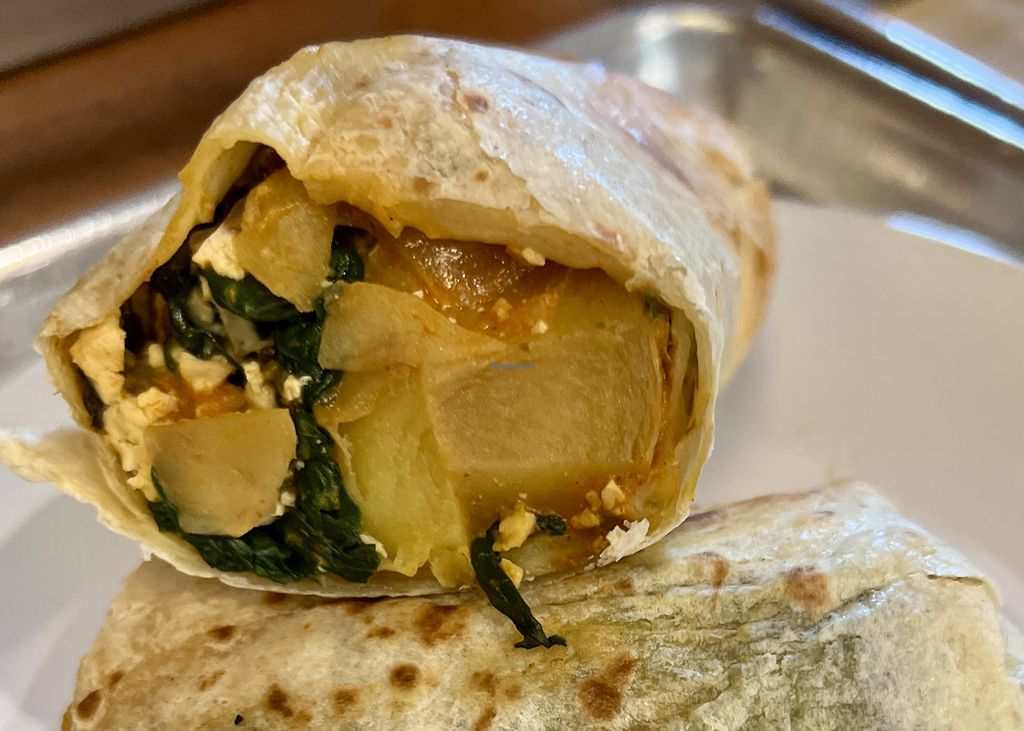 Tofu breakfast burrito is good, vegan with a little spice.