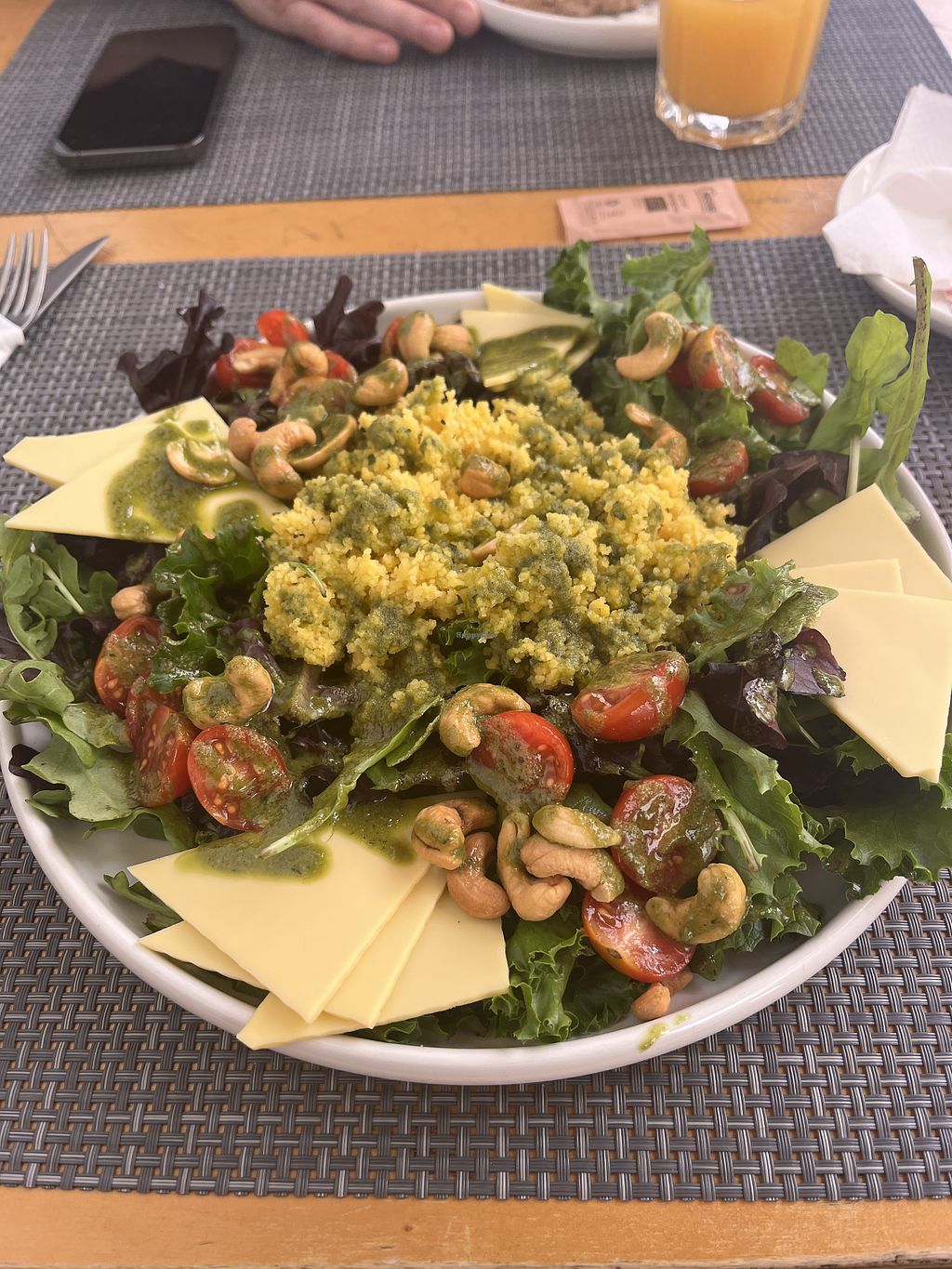 Soup of the day and salad of the day with house made juice.