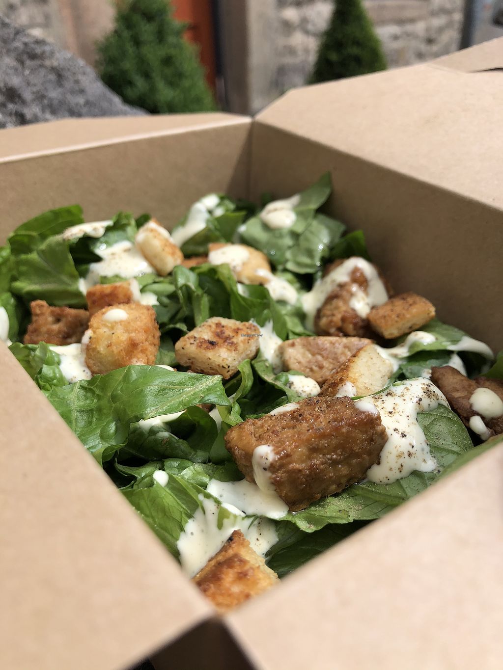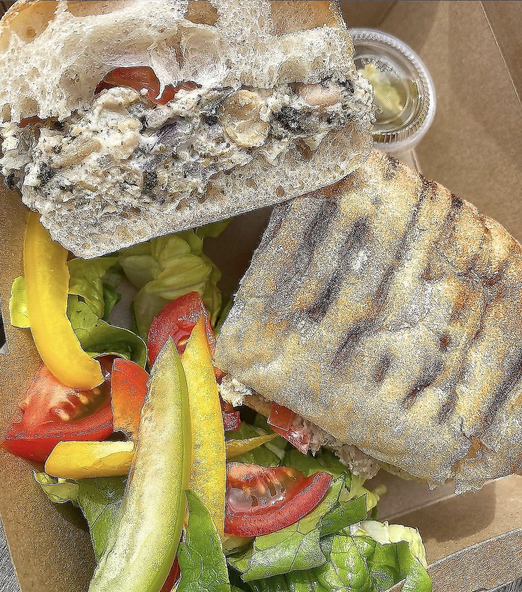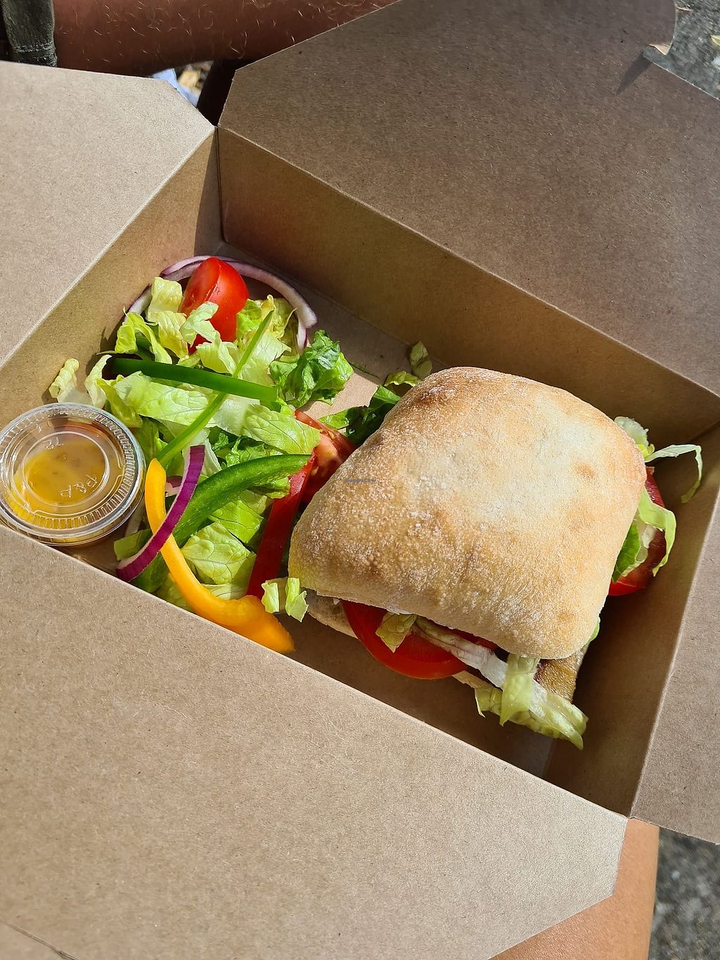Had an off menu ‘club sandwich’ with the tofu chkn seitan bacon with a side coleslaw and salad. Really well made coffee too!