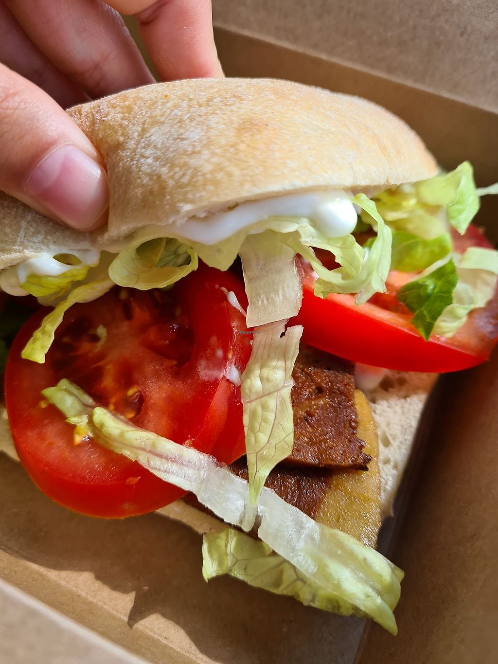 We got the bbq seitan steak ciabatta and both I and my non-vegan friend wolfed them down. Absolutely delicious! Shop also has some great bits including fresh cakes and Love Raw bars, as well as some tins and bits you could buy for lunch.