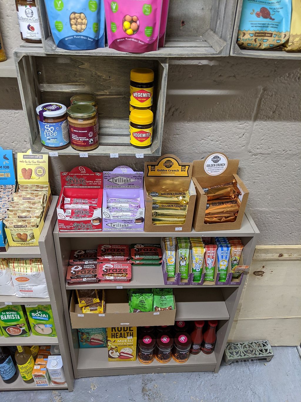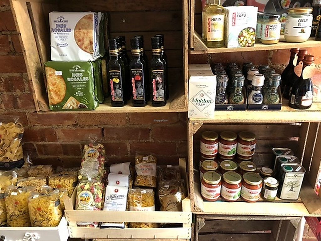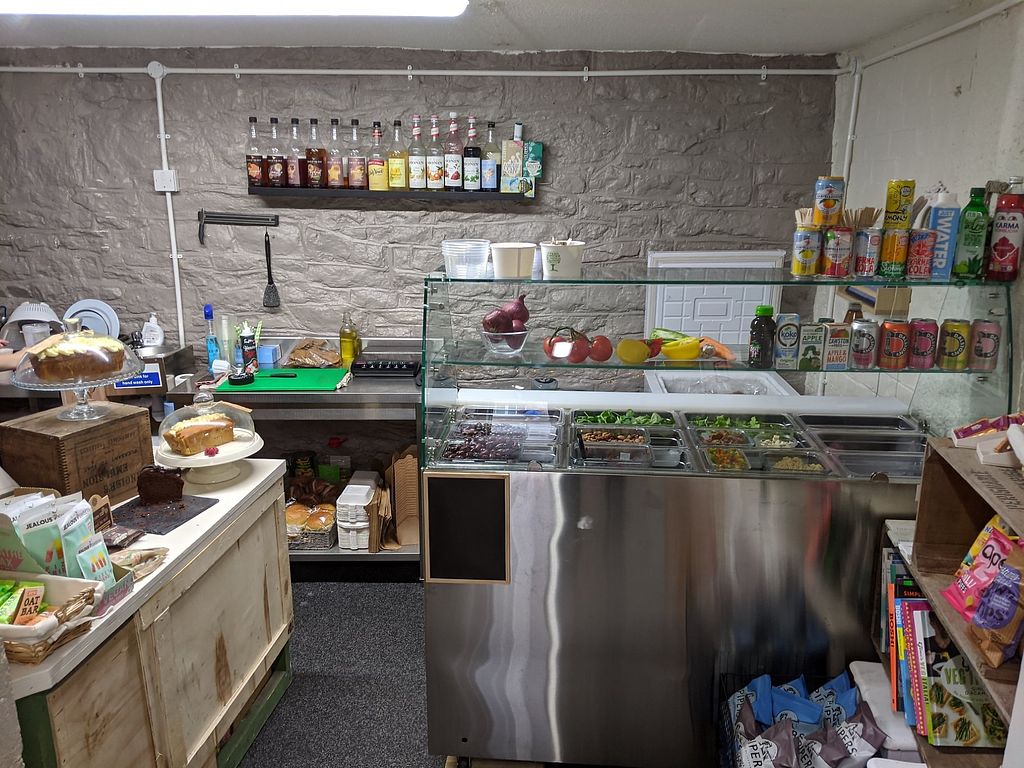 Incredible little deli / cafe with loads of options. Fresh food includes tofu and seitan sandwiches and salads, cakes, and loads of hot and cold drinks (coffees, milkshakes, smoothies, etc.). The shop has a great range of snacks, crisps, chocolates, etc. and also good supplies to take on a walk like energy bars etc.