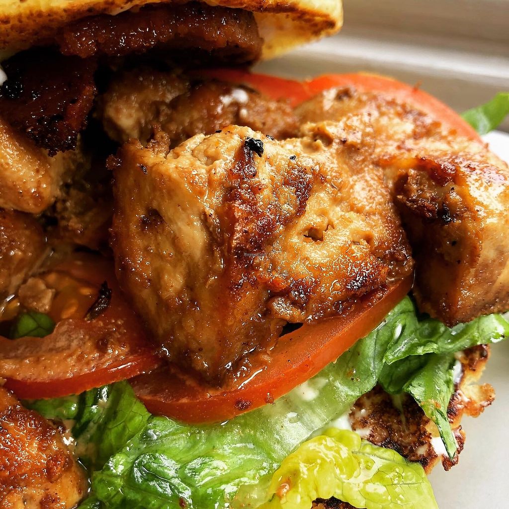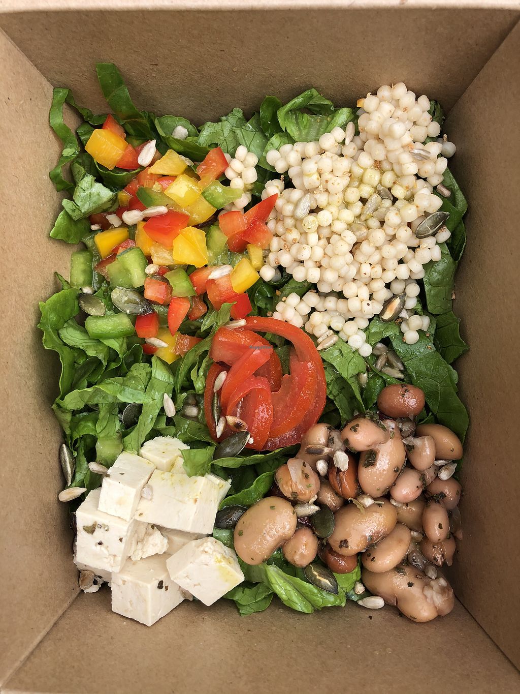Pros: Freshly made food to order, Seitan and tofu - high protein options