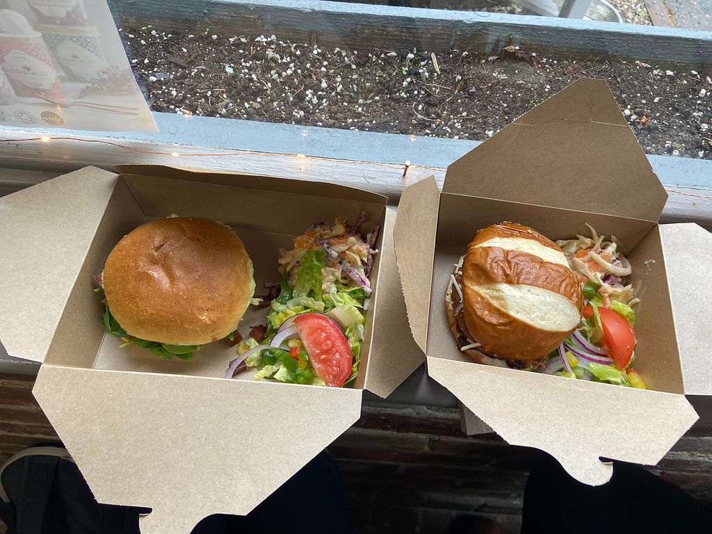 We ordered the Deli and a double cheese burger. They were both insane! We got them with slaw and salad on the side but would just get the sandwich next time. The bread was so soft and the fillings were super tasty. Crazy vegan junk food, just what we needed after a monster hike. Will continue the good recommendations to any more van pals we have!