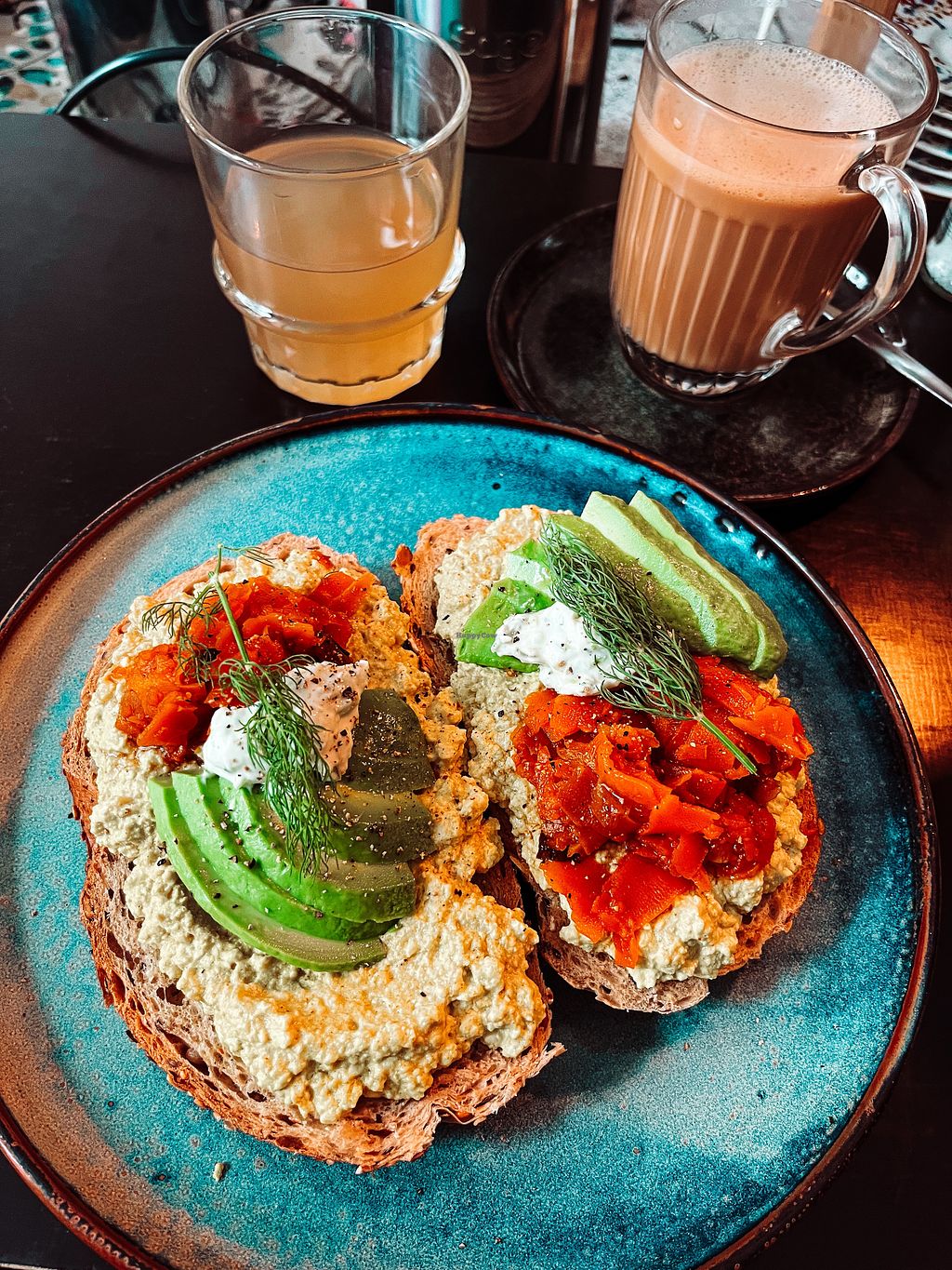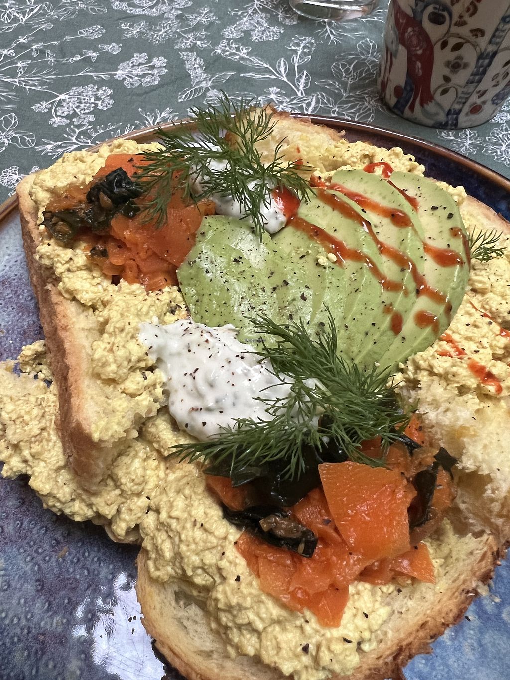 vegan salmon with tofu scramble and advocado and vegan cream cheese an…