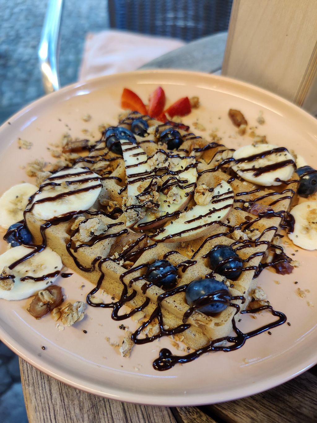 Plate for two (26€) and a café latte.