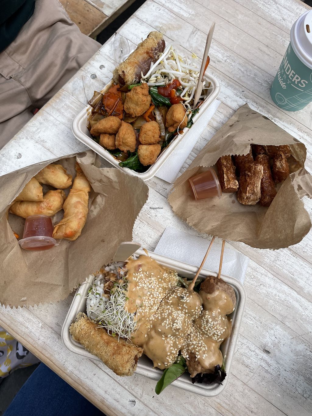These guys are always cooking up the tastiest market fare. There were more menu options than I remember there being on previous visits. We got the prawn rolls, bean curd rolls, satay chicken skewers and pad see ew. The mains all came with a taro roll and the lovely owner threw in an extra piece of each entree too. Highly recommend!