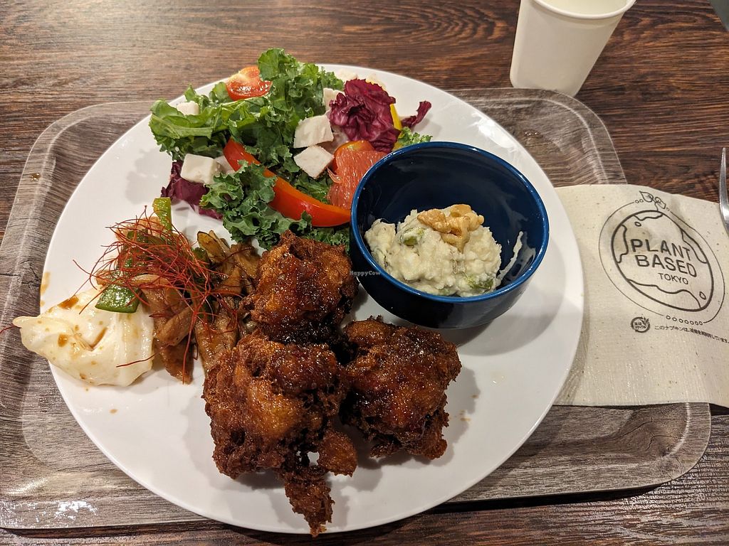 I'm not sure if I just ordered the bad one on their menu but the soy fried chicken is not that good. It's hard and not hot (not even warm) like it just came out of the fridge, also the sauce is cold. The salad and side dish are fine. Quite disappointing as this is the only vegan food I did not enjoy on my 10-day Japan trip. Good thing I ordered the vegan ramen next to them, it was sooooo good! It's Vejin Ramen.