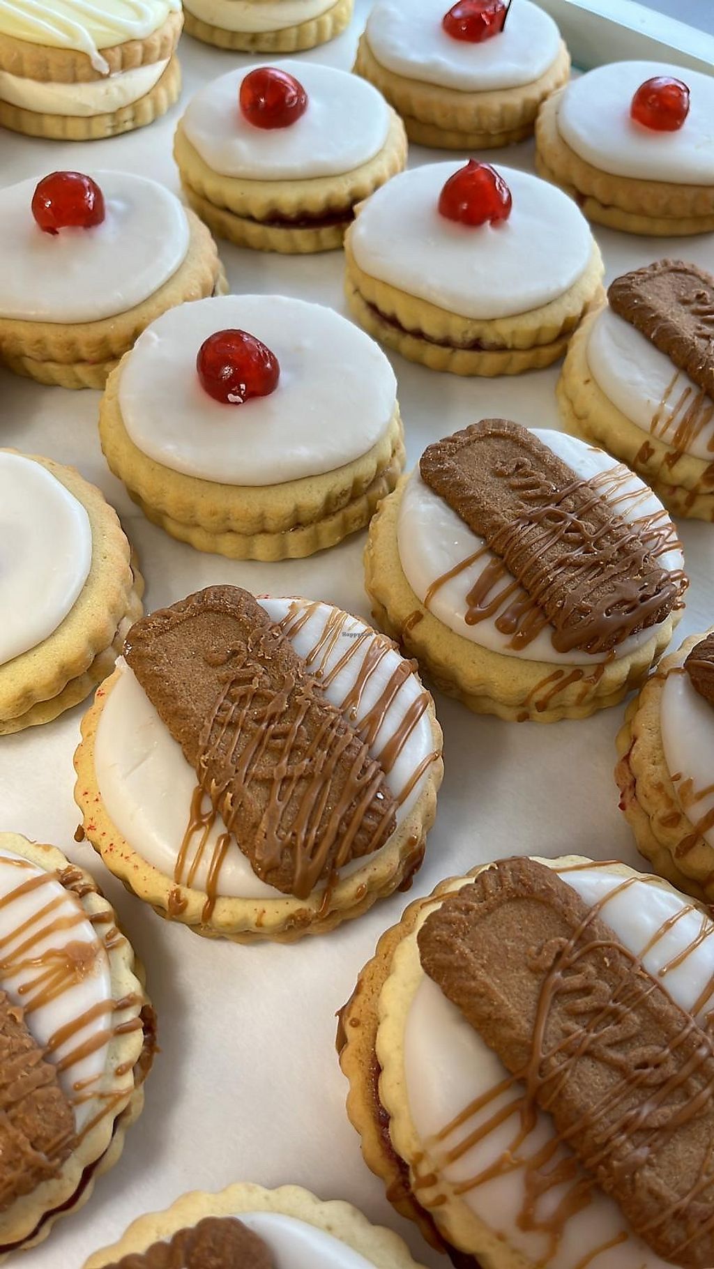 Lemon curd empire biscuit & chocolate and strawberry bun #Veganuary
