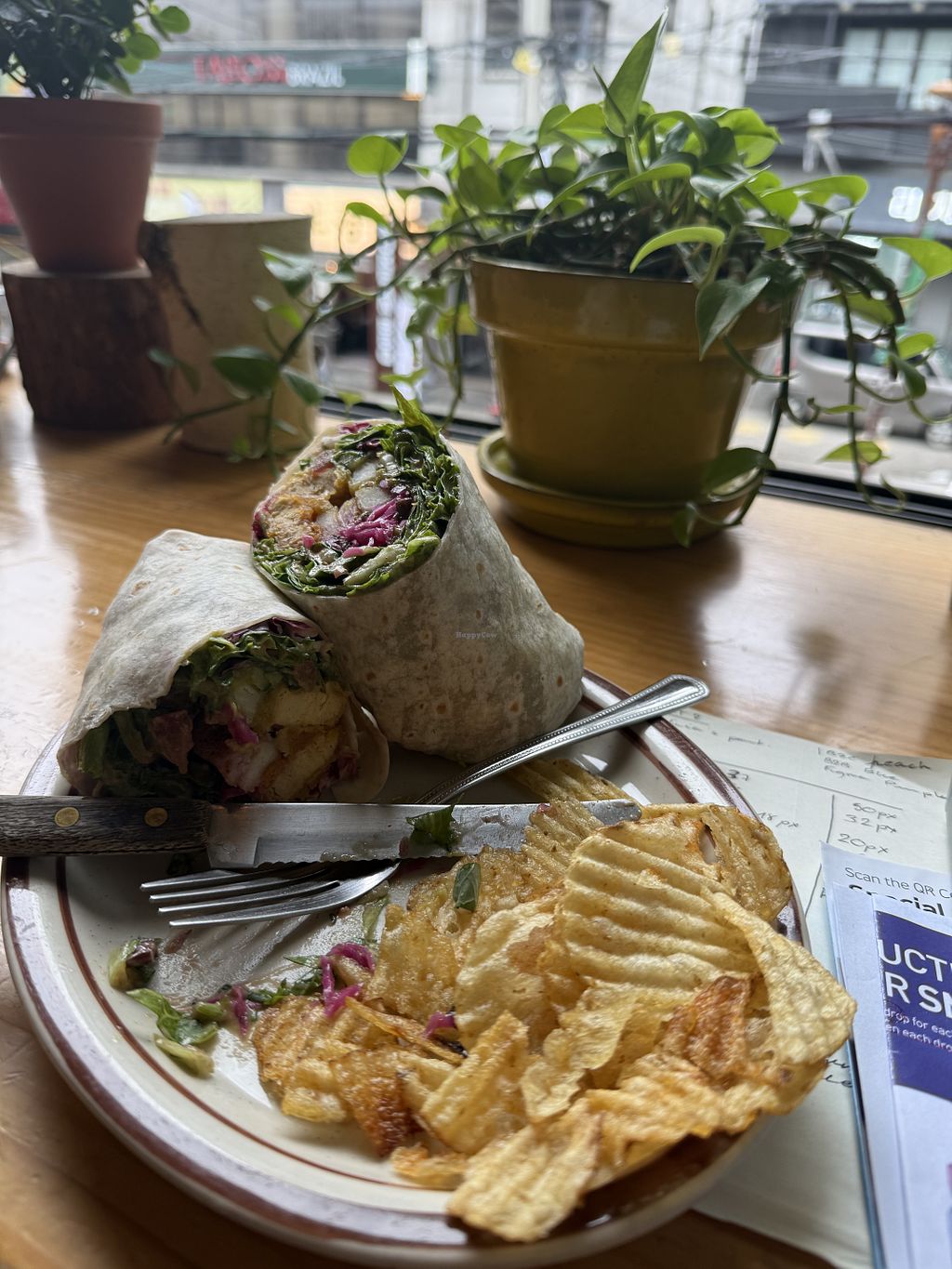 Read moreThe wrap was wonderful. Inside there were croutons, greens, nugget pieces and amazing dressing. And chips to boot.