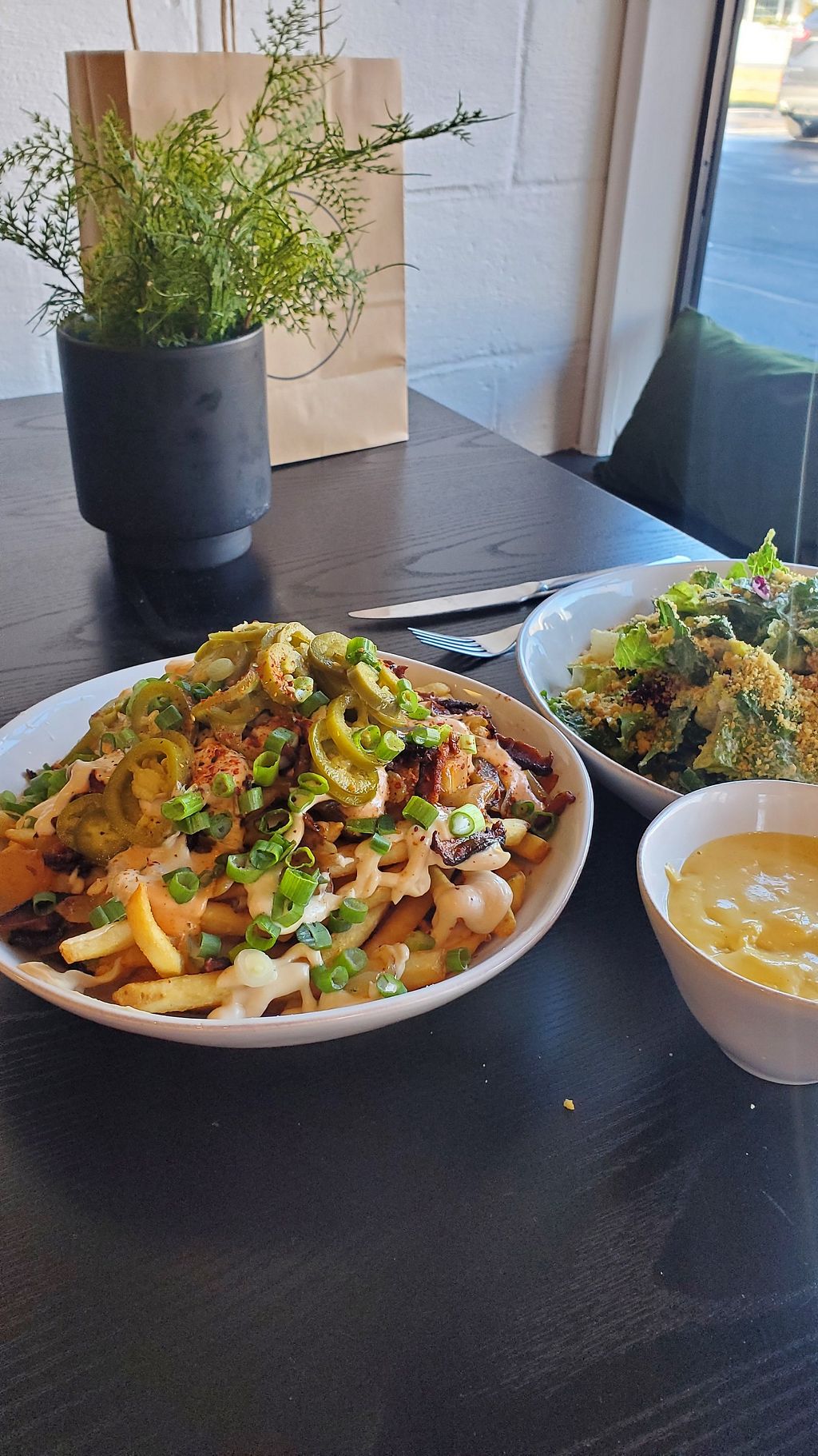 Read moreThis time, we wanted a snack since we had NYE dinner reservations. We ordered to share the Ceasar Salad and tried the Everything Fries ( Cashew Queso on the side because I allergic, but my husband enjoyed it! ) which is now making my favorites list!