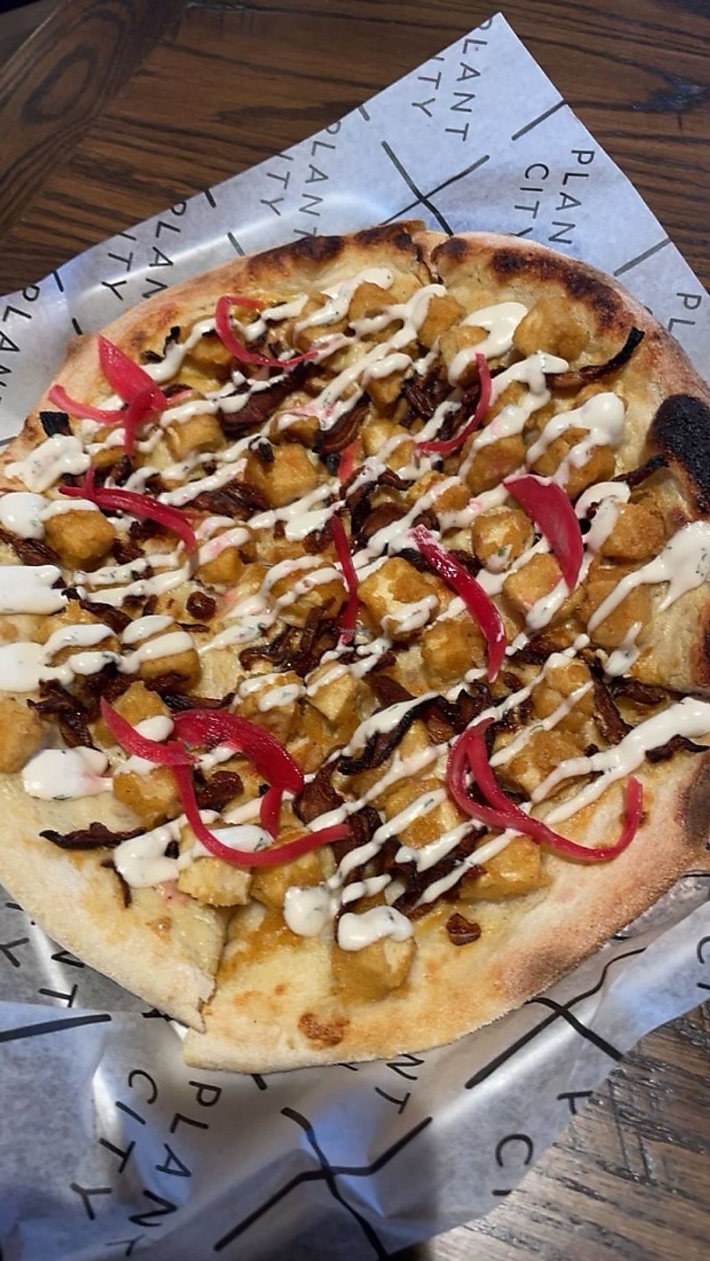 “Chicken” shiitake bacon ranch pizza